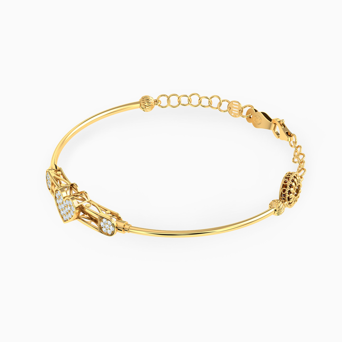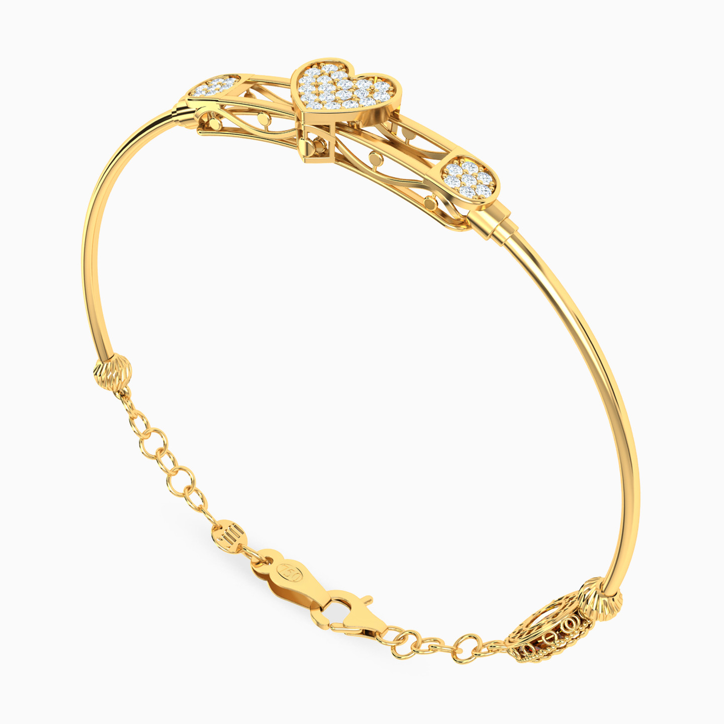 Heart Cubic Zirconia Bangle Bracelet in 18K Gold
