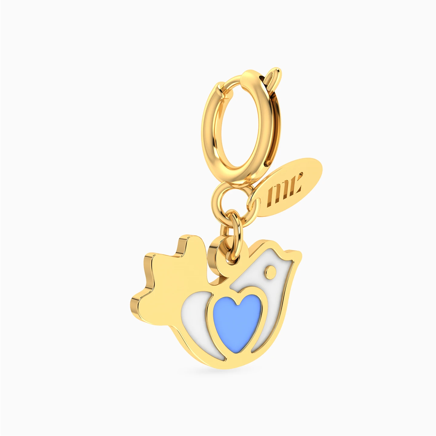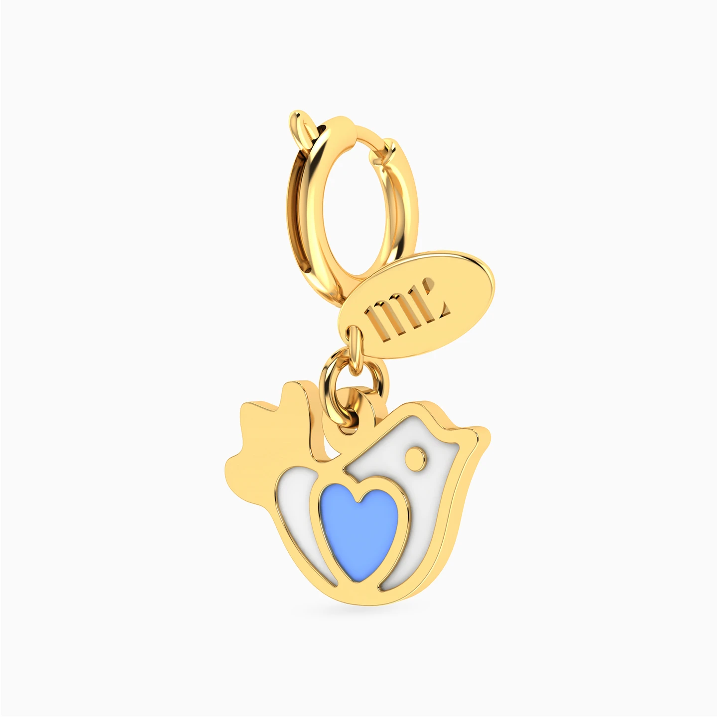 Celebrate your child's playful spirit with this charming bird charm from the Miss L Kids collection, perfect for newborns. Designed in 14k yellow gold and adorned with a delicate blue and white enamel finish, it features a heart detail that adds a loving touch.