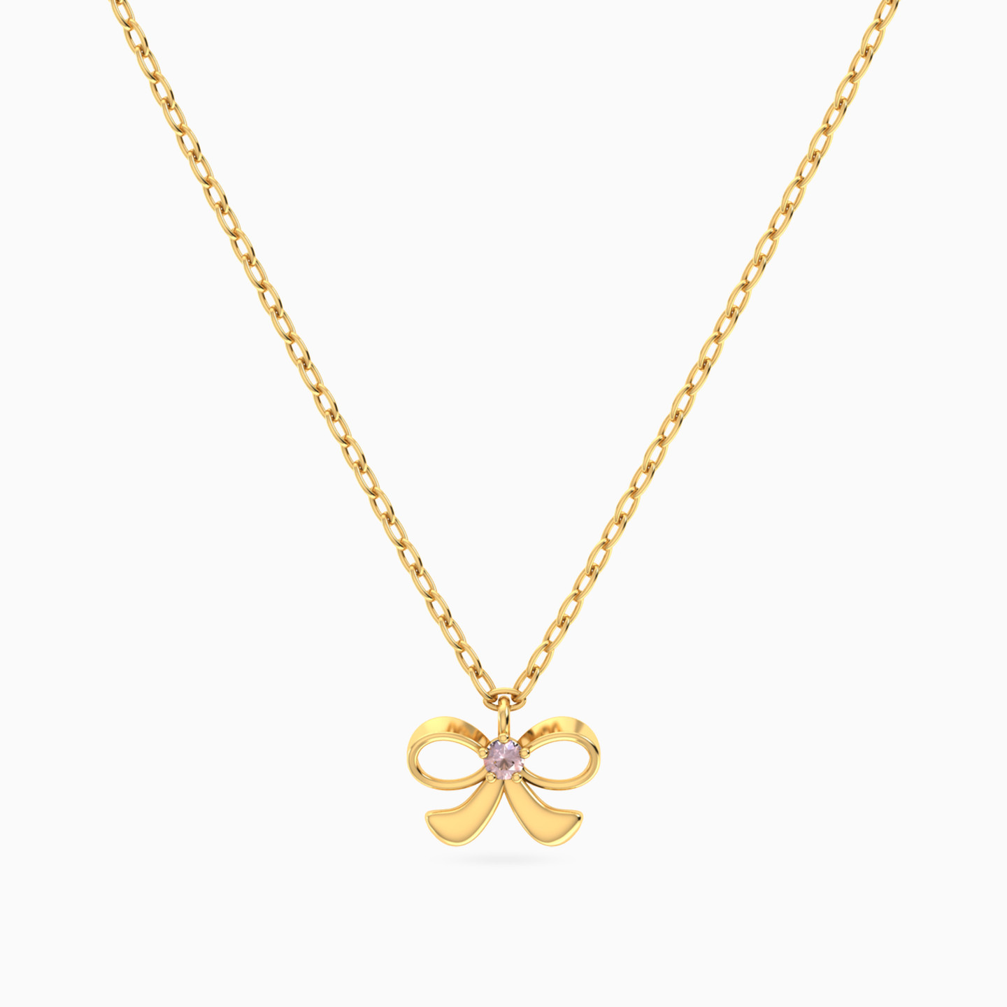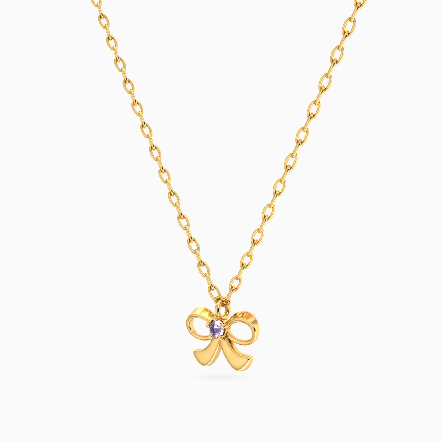 Kids Bow Purple Stone Necklace in 14K Gold