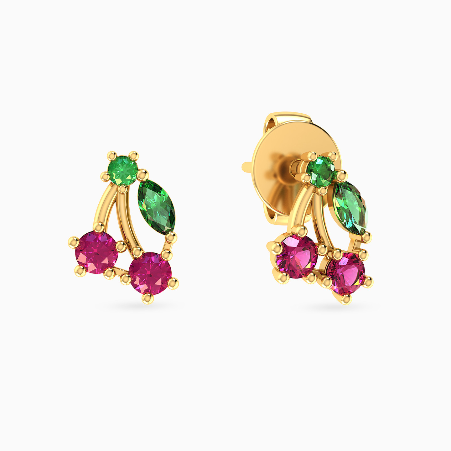 Kids Cherry Colored Stones Stud Earrings in 14K Gold - 2