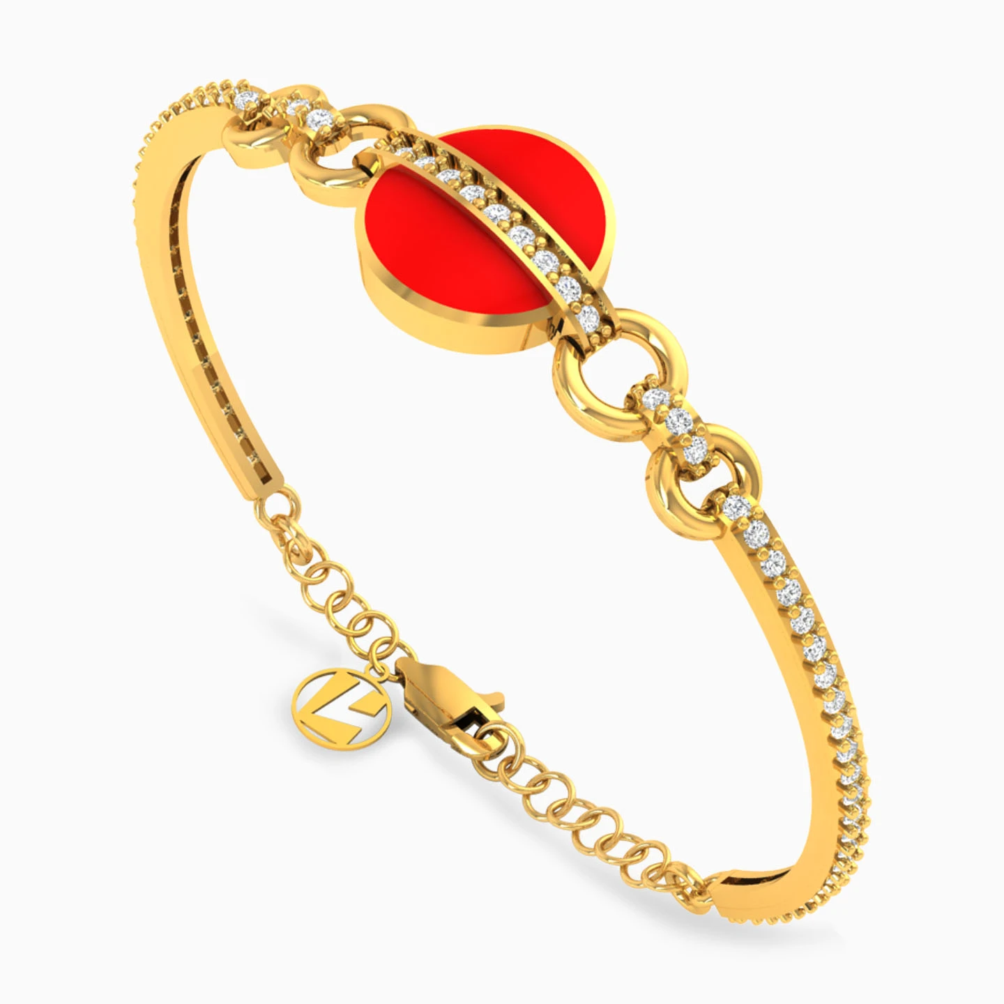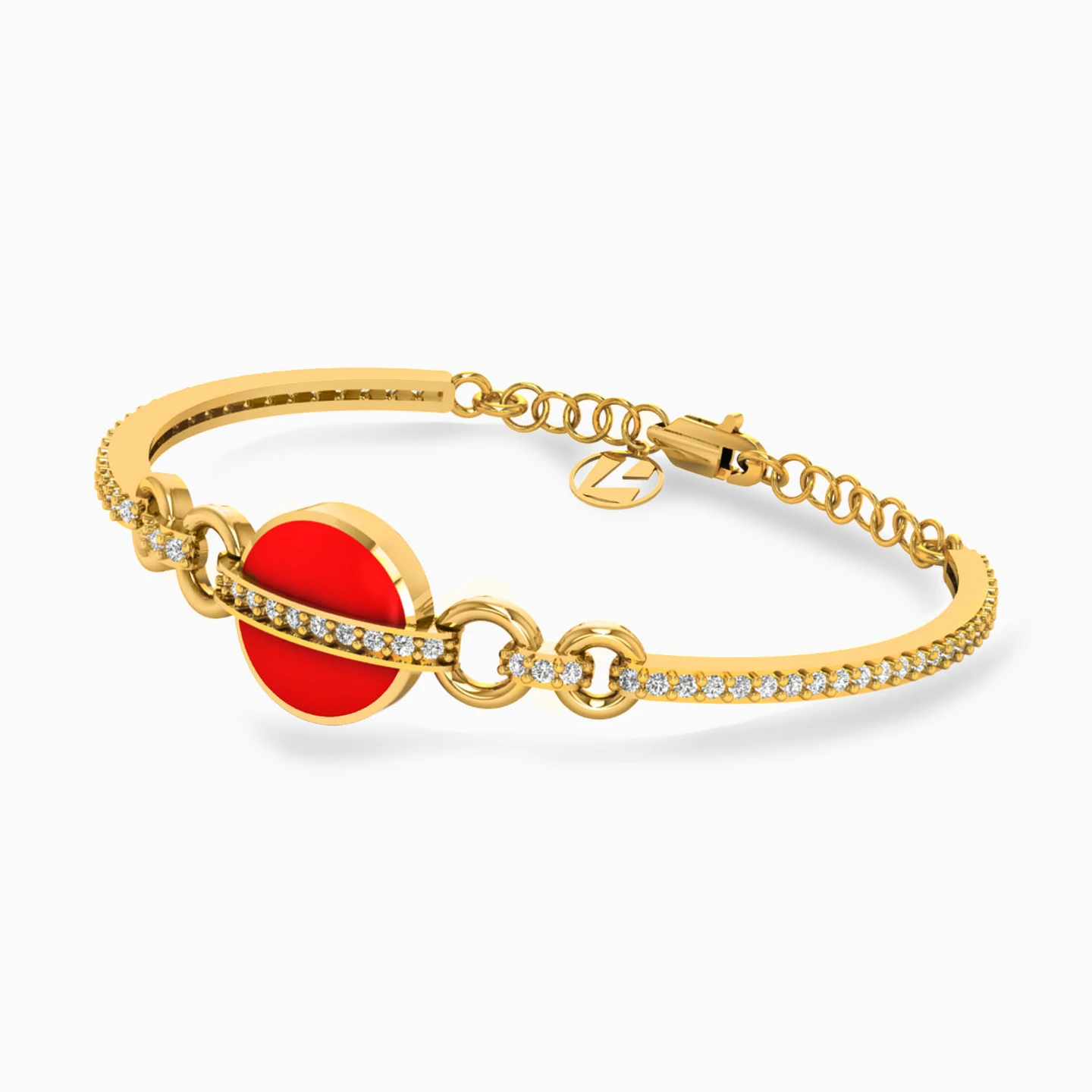 Kids Circle Cubic Zirconia & Enamel Coated Bangle Bracelet in 18K Gold