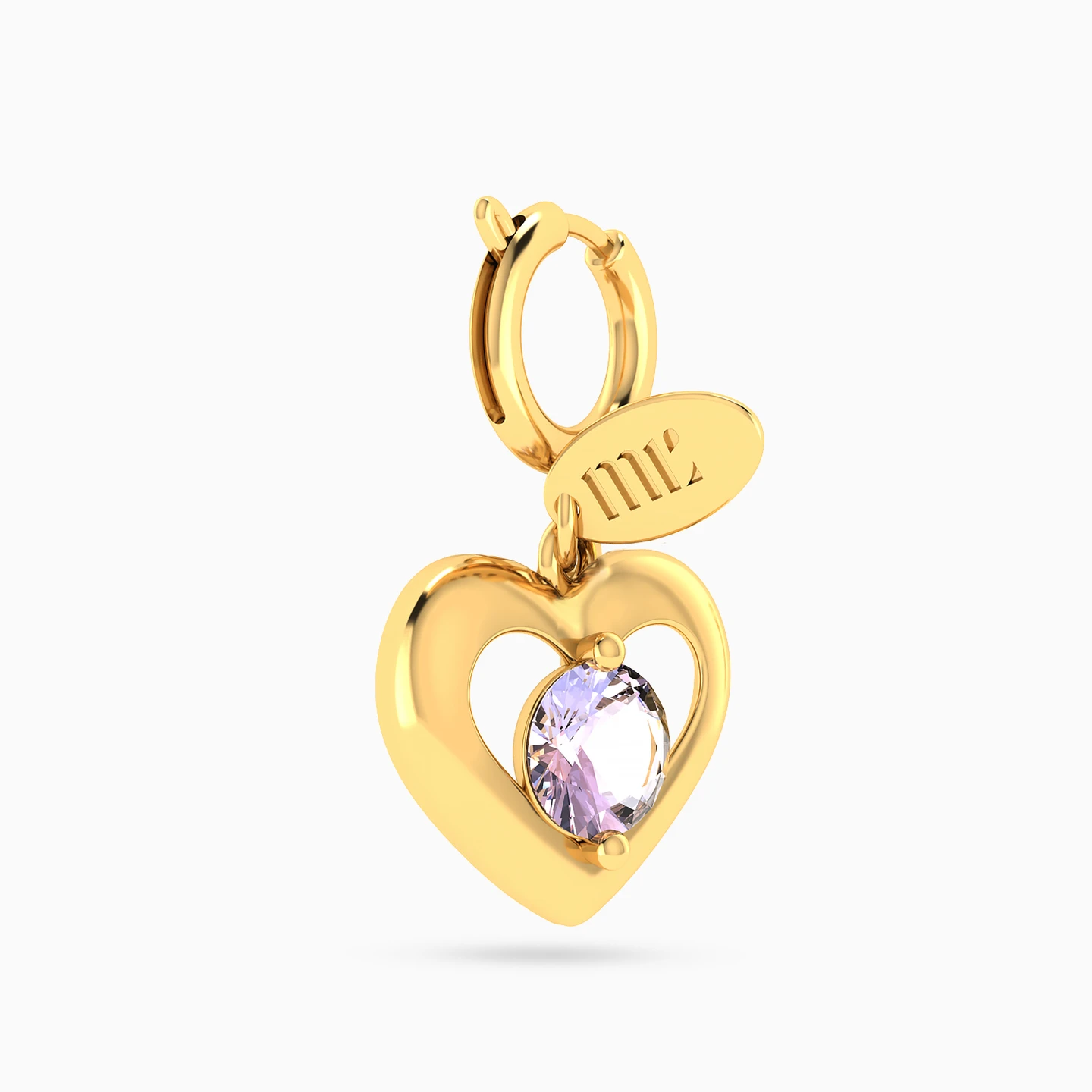 Kids Heart Purple Stone Charm in 14K Gold
