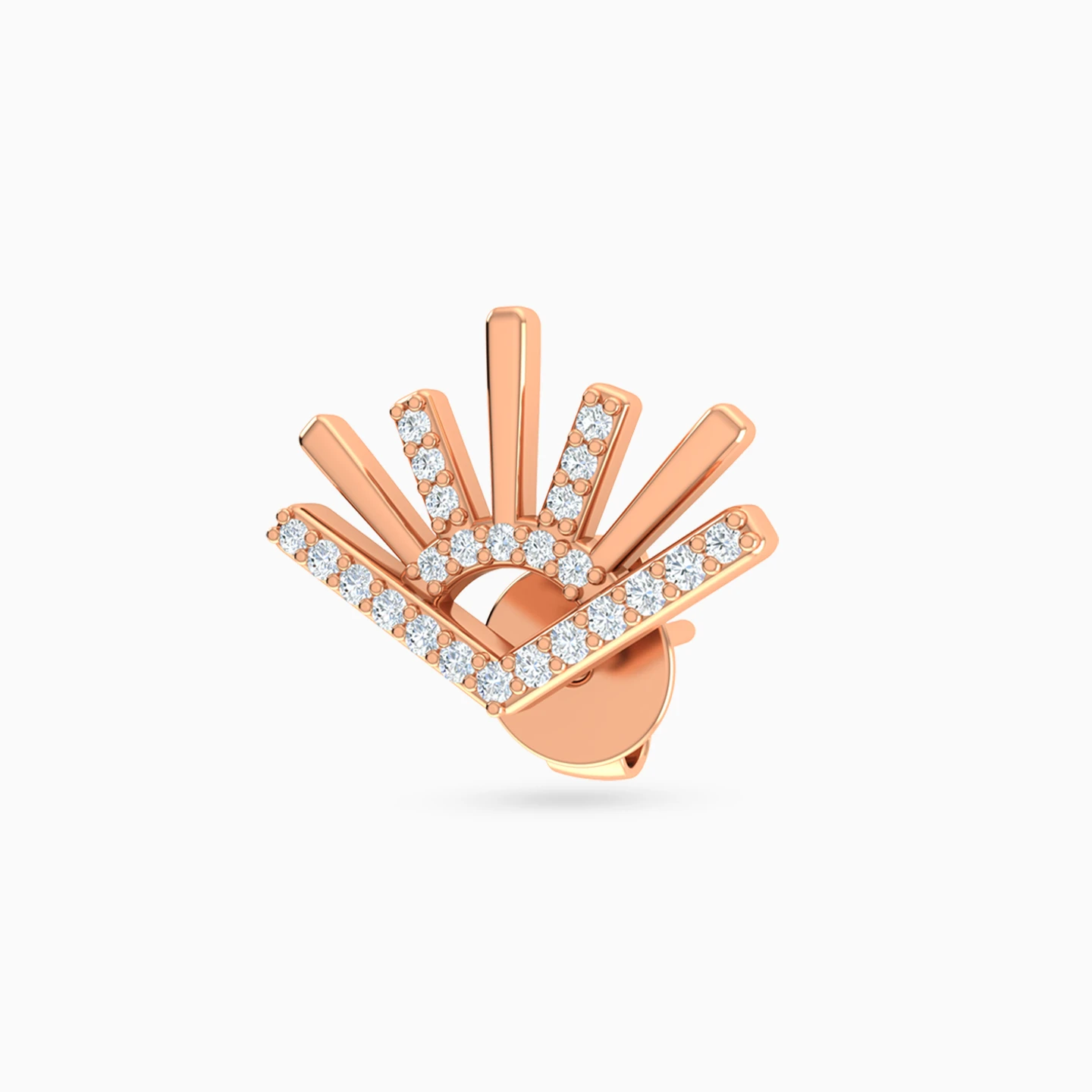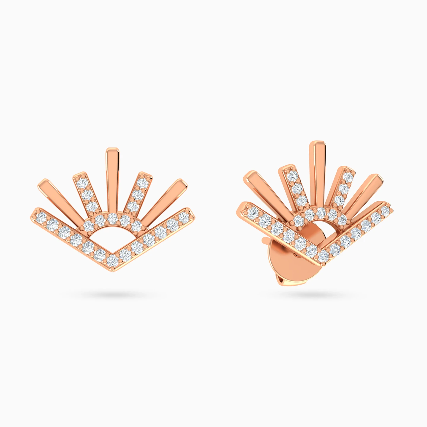 The ultimate statement of sunny sophistication! These stunning 18-karat rose gold stud earrings from L'azurde Diamonds from Le Soleil Collection feature a captivating rising sun made of sleek gold rays alternating with diamond-encrusted rays for a dazzling effect. The warm rose gold and sparkling brilliant-cut diamonds create a perfect blend of elegance and radiance, making these earrings perfect for brightening any look.