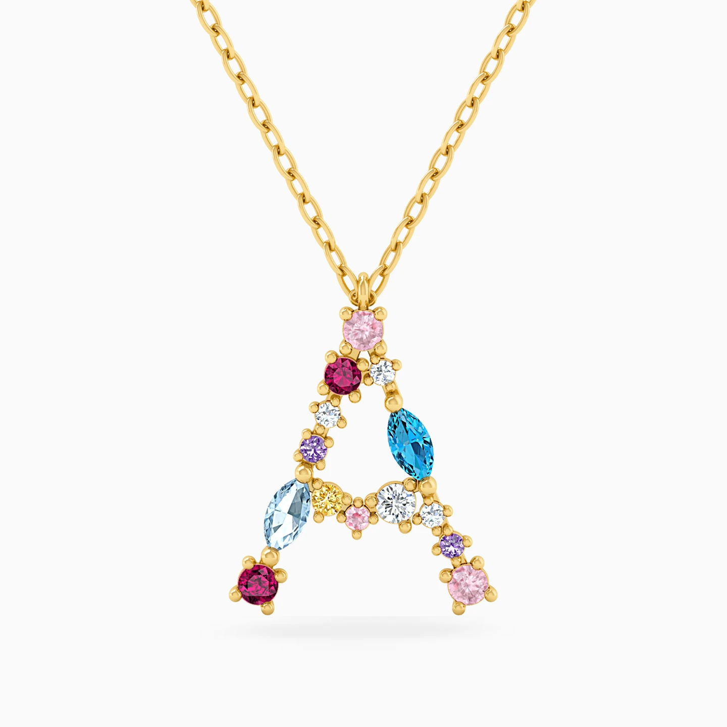 Letter A Colored Stones Necklace in 18K Gold