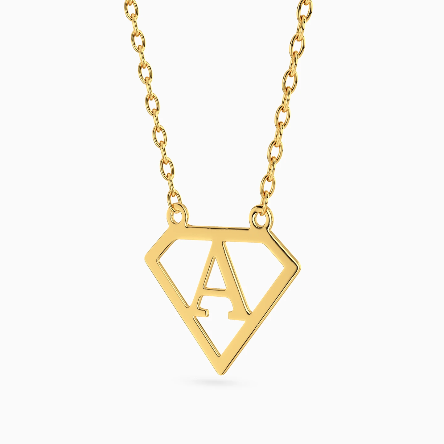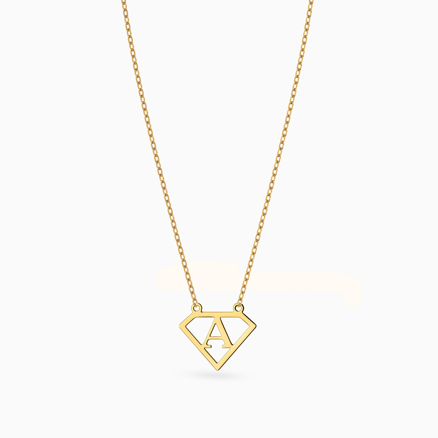 Bold and personal. This necklace features the letter “A” framed within a diamond-inspired shape, symbolizing strength and individuality. A standout piece for the confident woman who wears her identity with pride.
