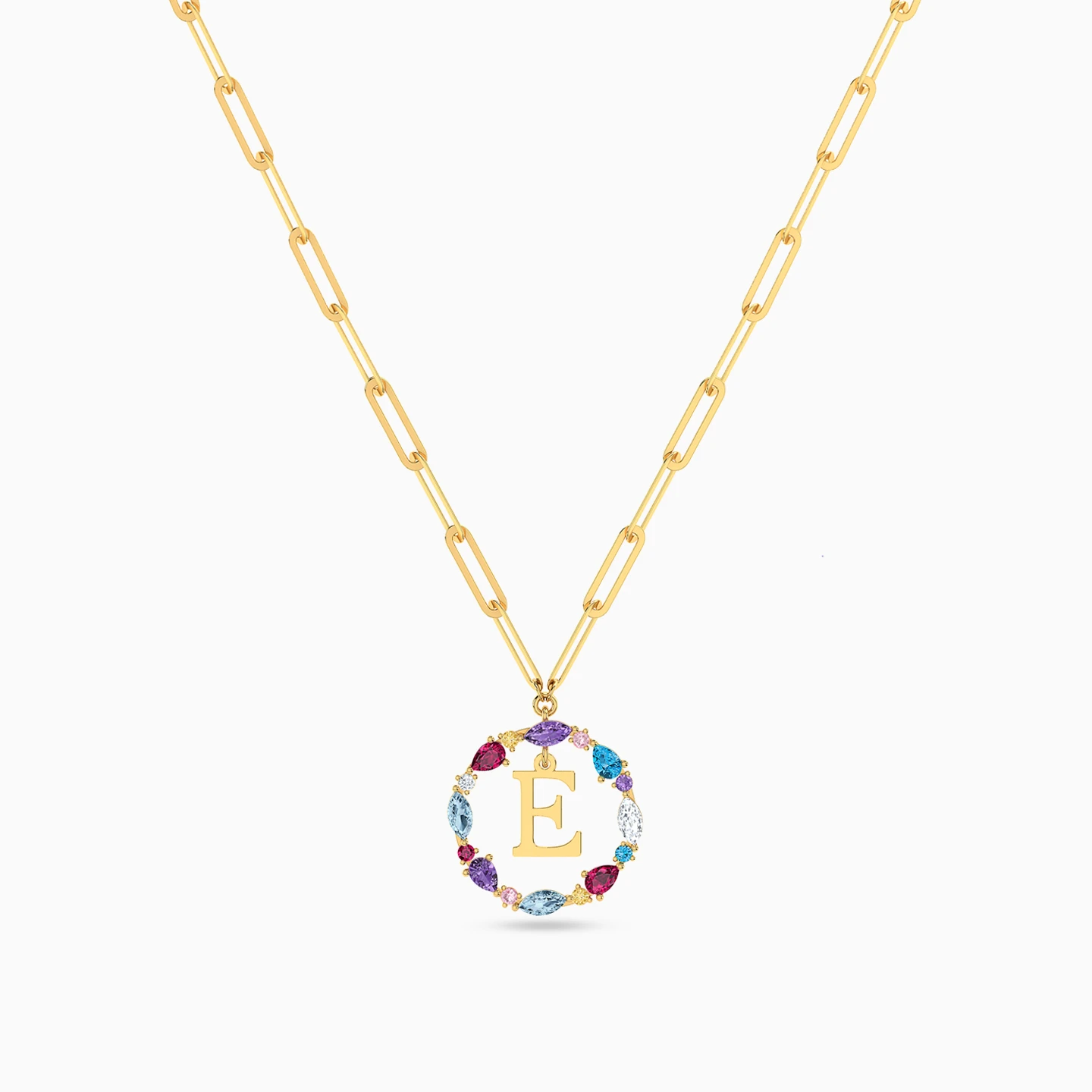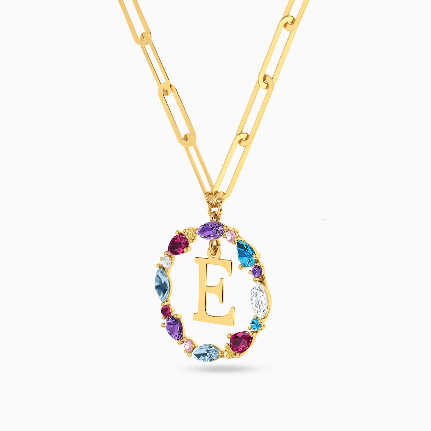 All that sparkles is sure to give your look a style boost, like this necklace from L'azurde Instyle. It features a circle of colored stones that hold a letter E to the center and drop from an 18-karat yellow gold link chain. Add this to your weekend wardrobe and you will be sure to get heads turning.
