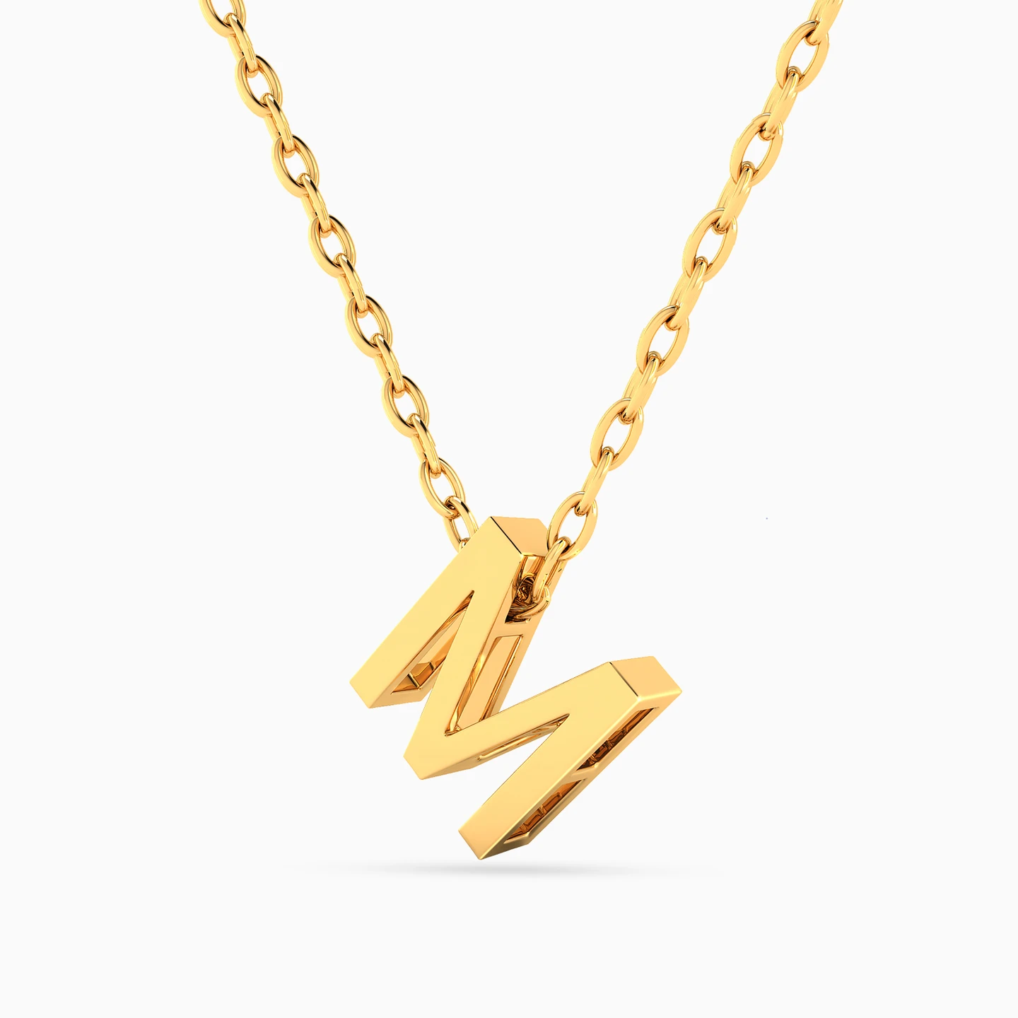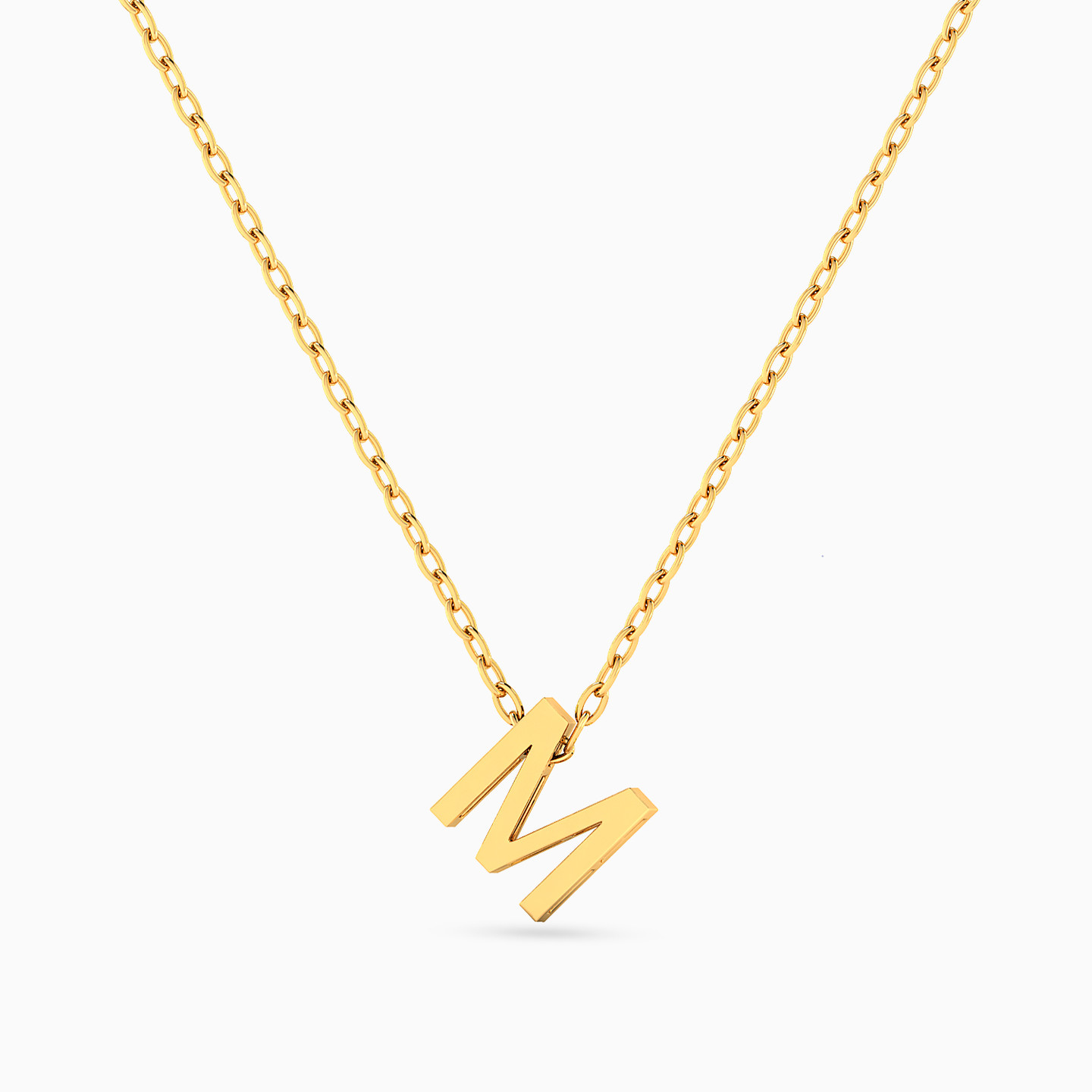Boldly personal. This gold necklace features the letter "M" in a sleek, modern silhouette—a powerful symbol of identity, perfect for everyday wear or a meaningful gift.