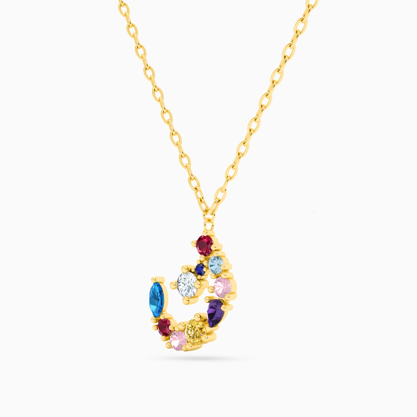 Letter Noon Colored Stones Necklace in 18K Gold