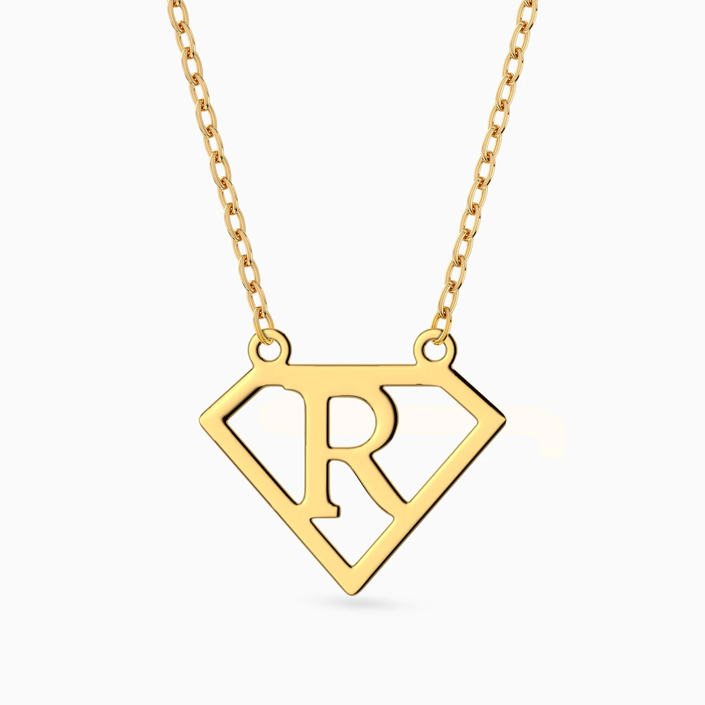 Bold and personal. This necklace features the letter “R” framed within a diamond-inspired shape, symbolizing strength and individuality. A standout piece for the confident woman who wears her identity with pride.