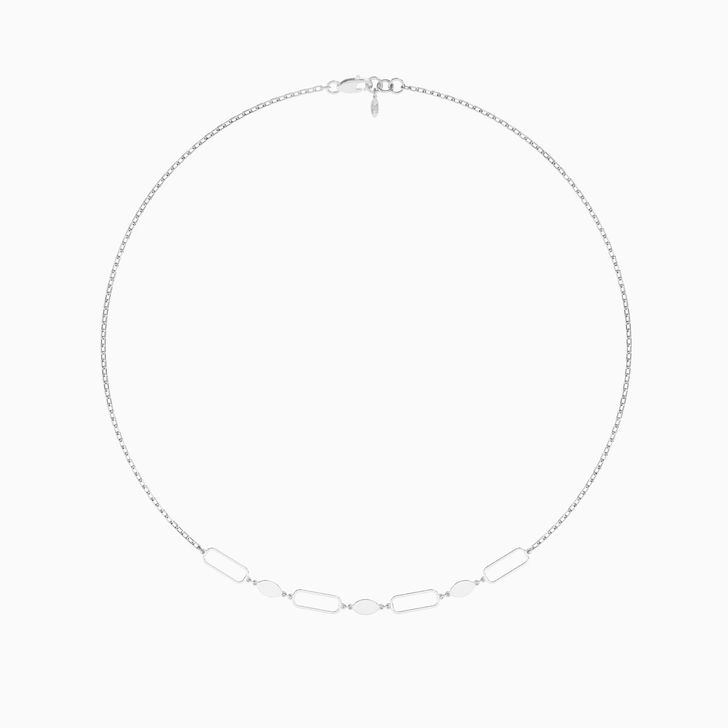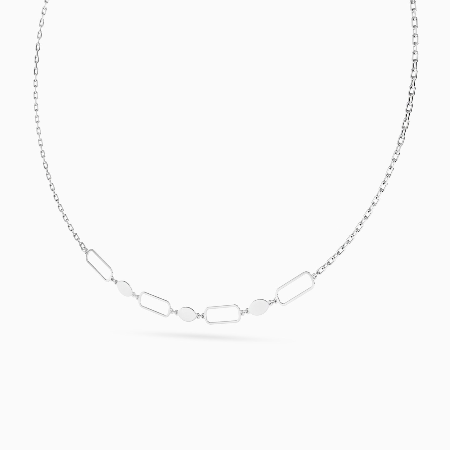 Marquise & Elongated Open Links Necklace in Silver