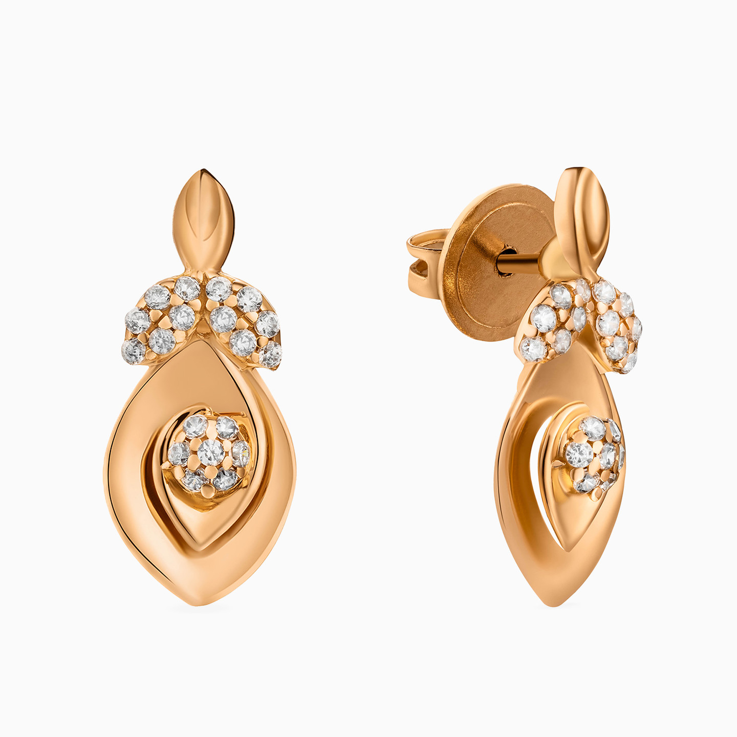 Marquise Cubic Zirconia Stud Earrings in 21K Gold