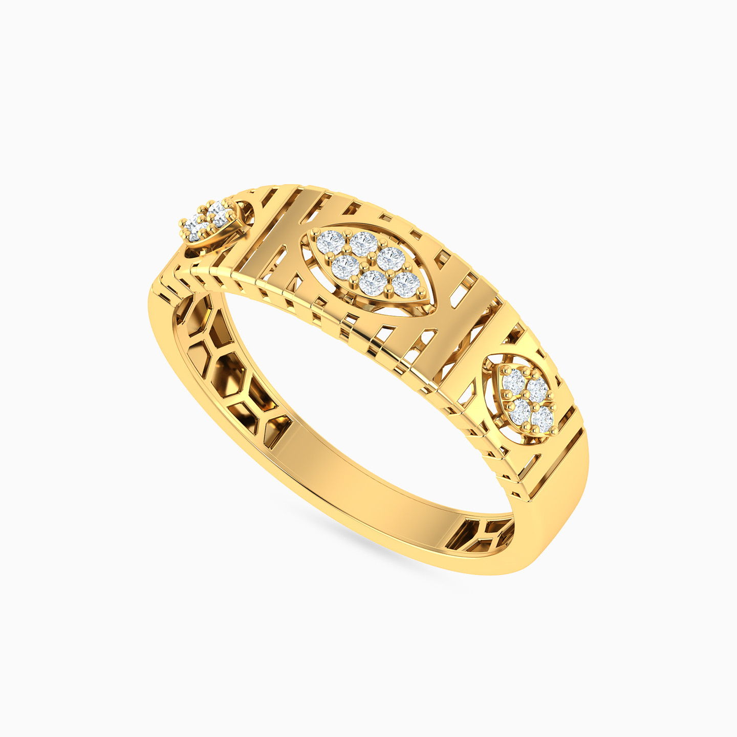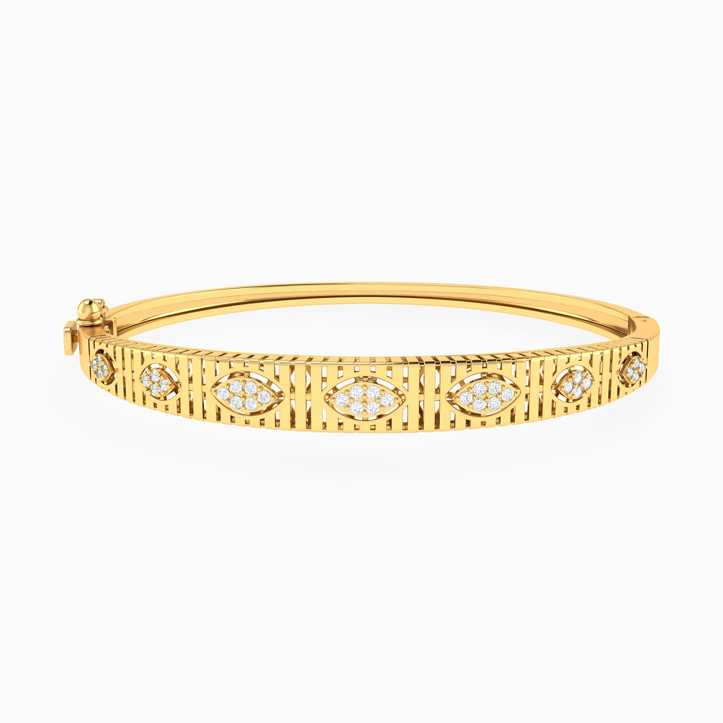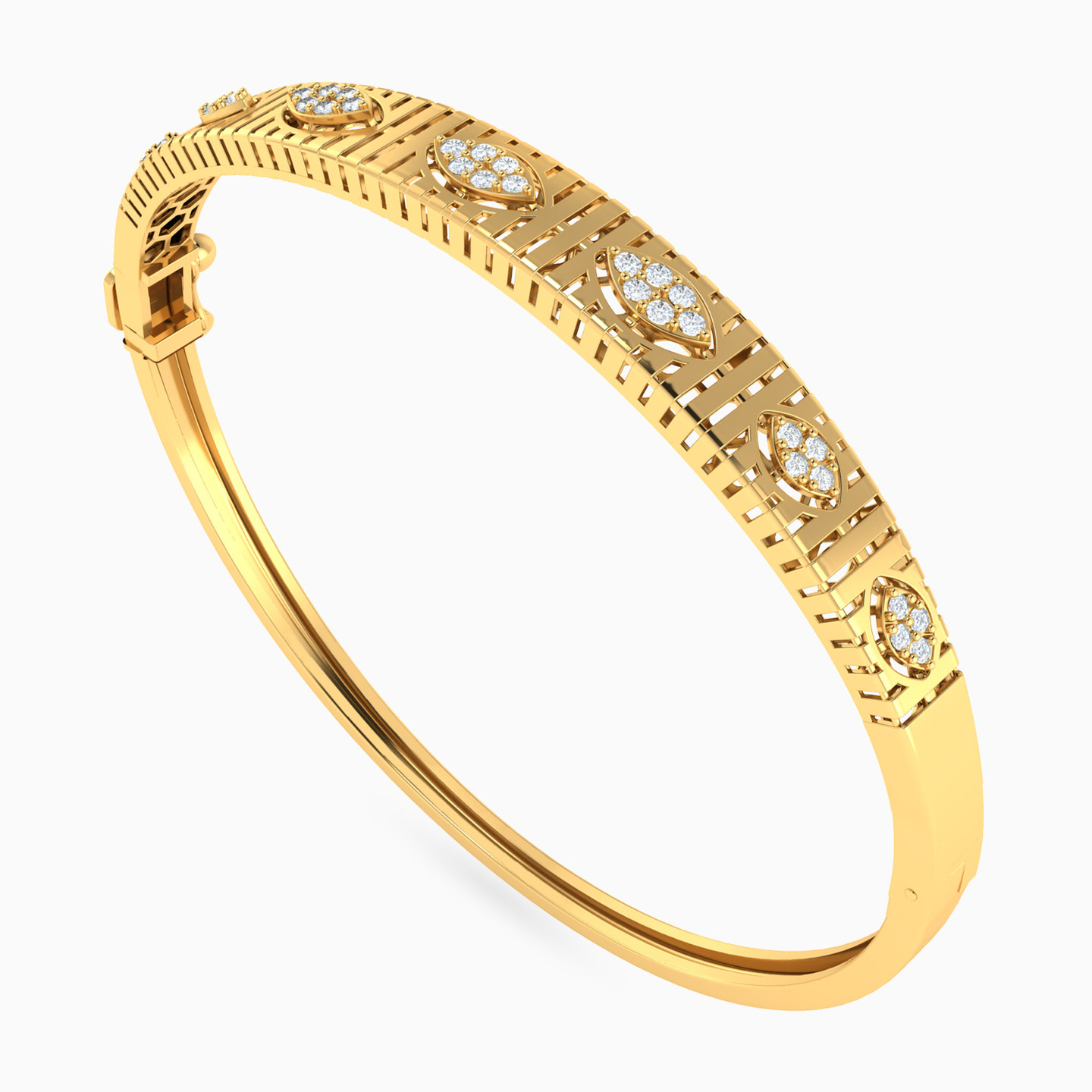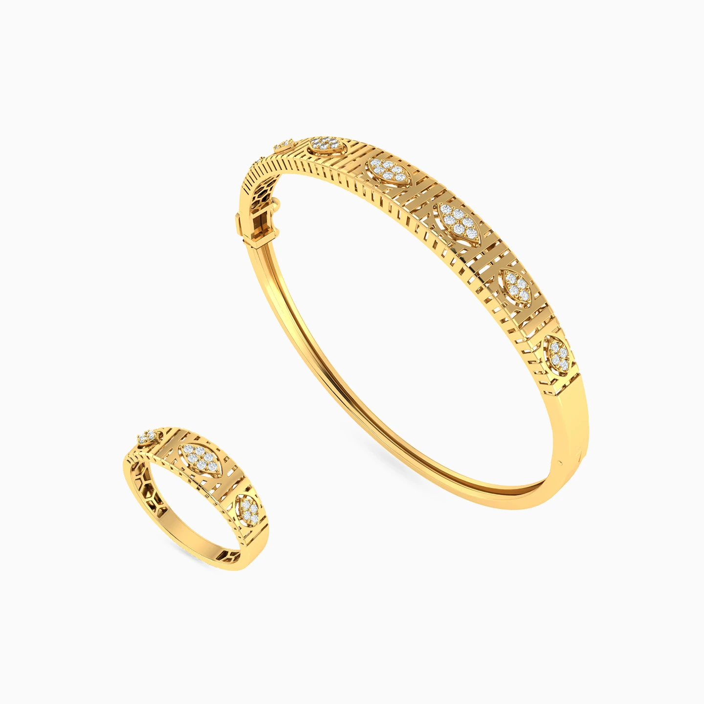 A duo of elegance and harmony. This Lazurde Gold set features a matching bangle and ring, each detailed with marquise-shaped motifs filled with pavé-set cubic zirconia against a textured gold backdrop. A coordinated pair that blends timeless charm with refined sparkle.