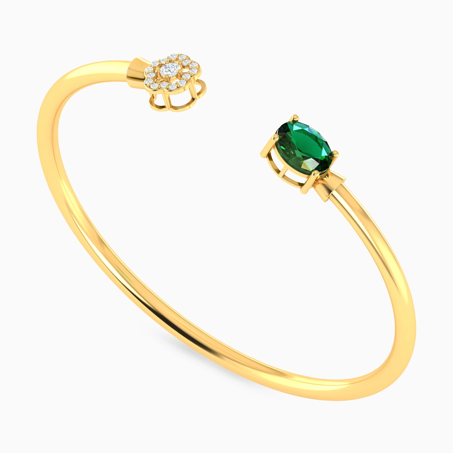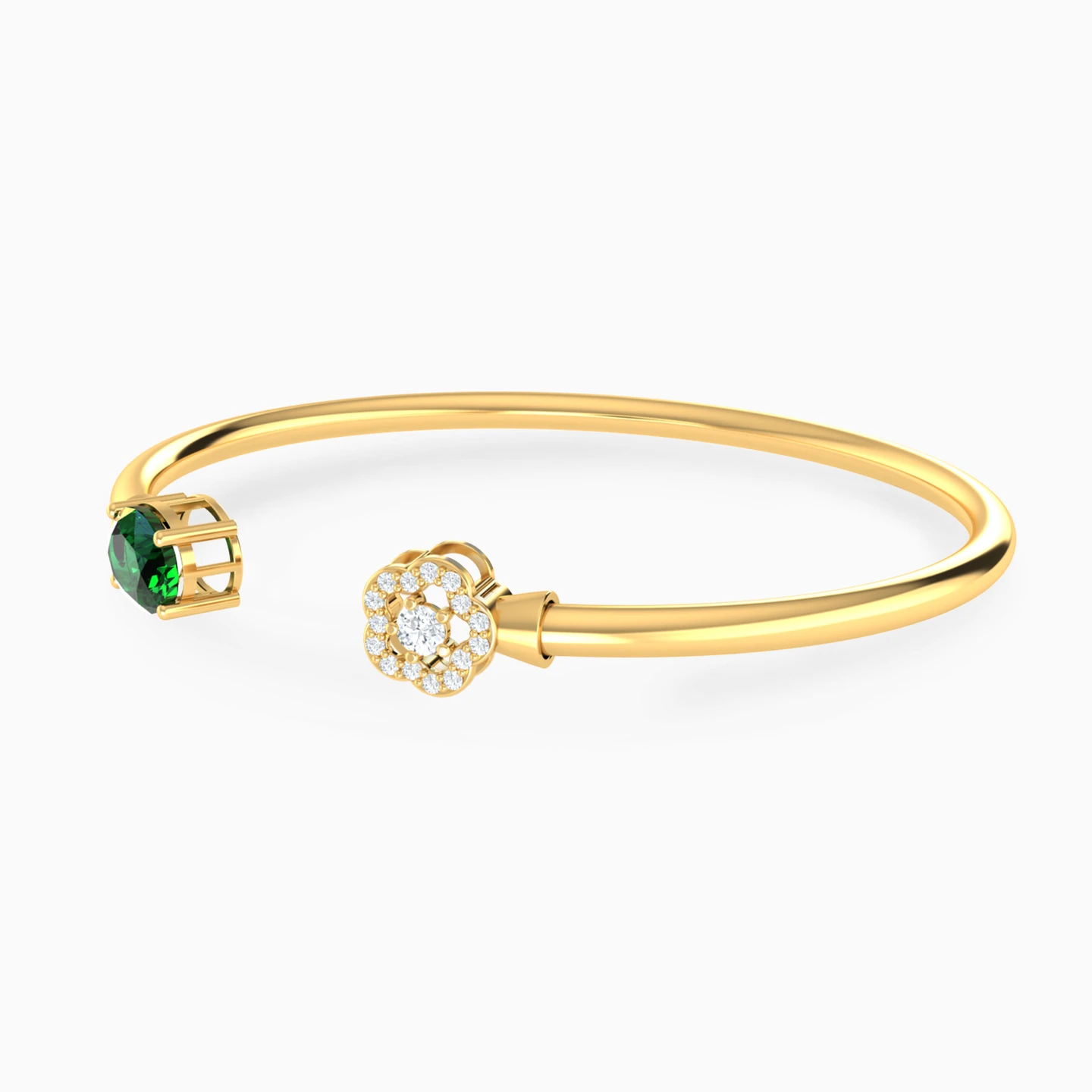 Designed for the woman who was destined to shine, this eye-catching cuff bracelet from L'azurde Gold is sure to be the envy of others. With a bold colored stone on one side and a clear stone flower motif on the other, this 18-karat yellow gold bracelet has irresistible beauty. It’s the perfect choice for everyday glamour at work or play.