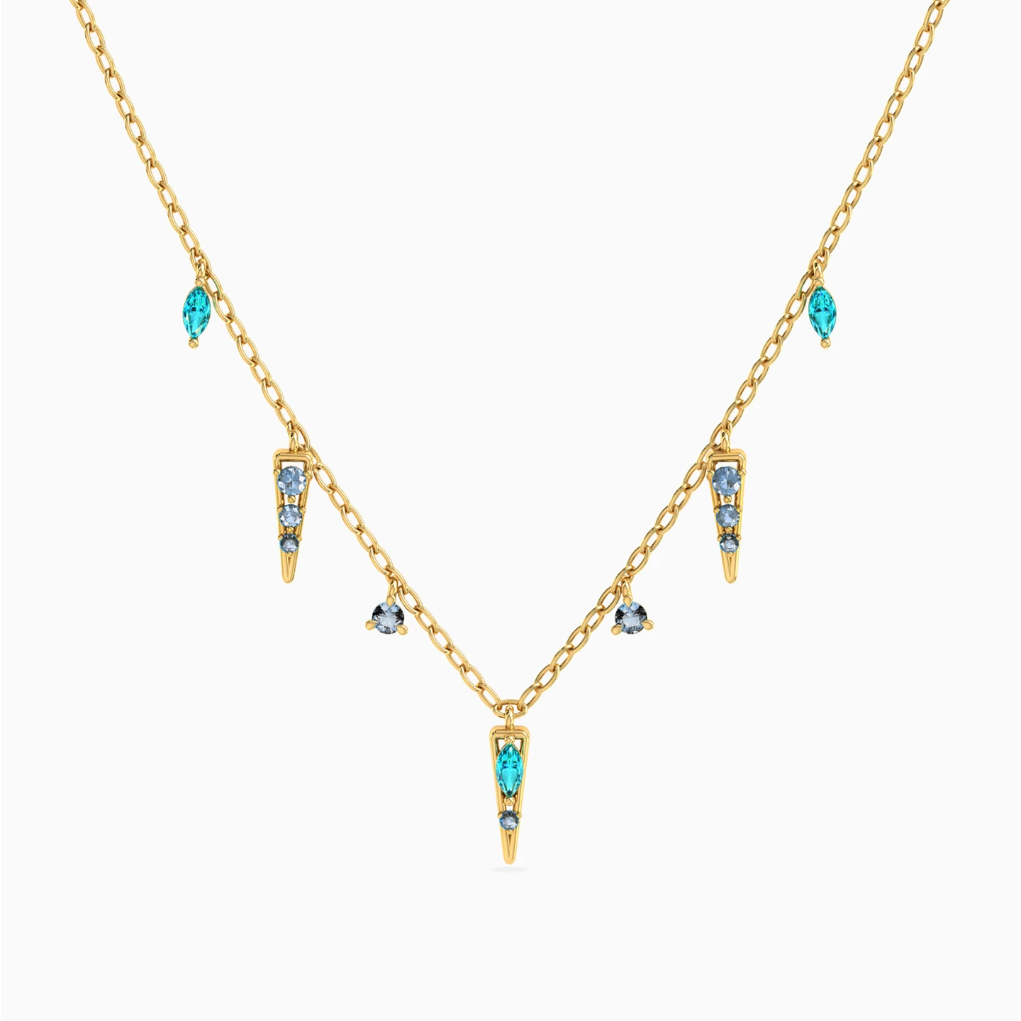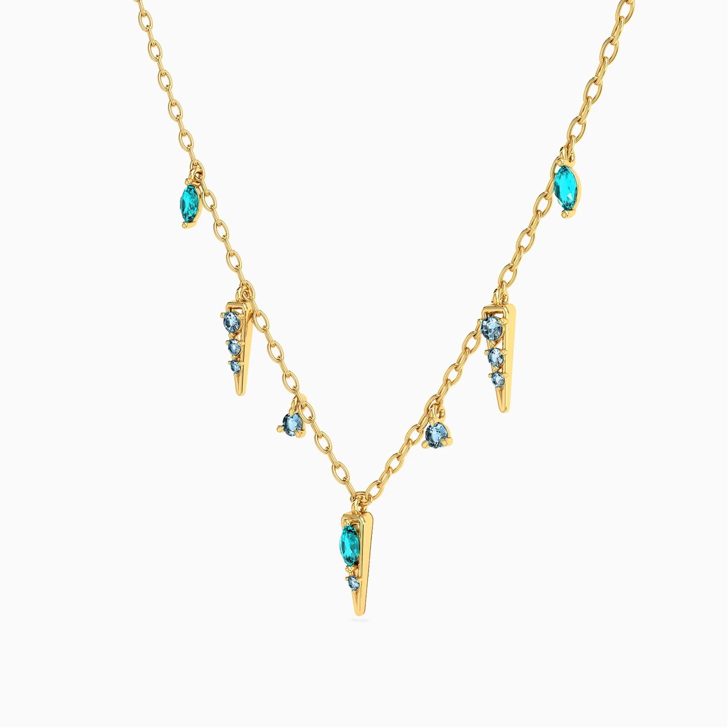 Multishaped Green Stones Charms Necklace in 18K Gold