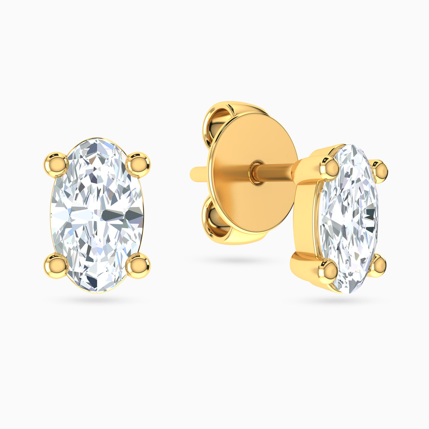 Oval Cubic Zirconia Stud Earrings in 18K Gold