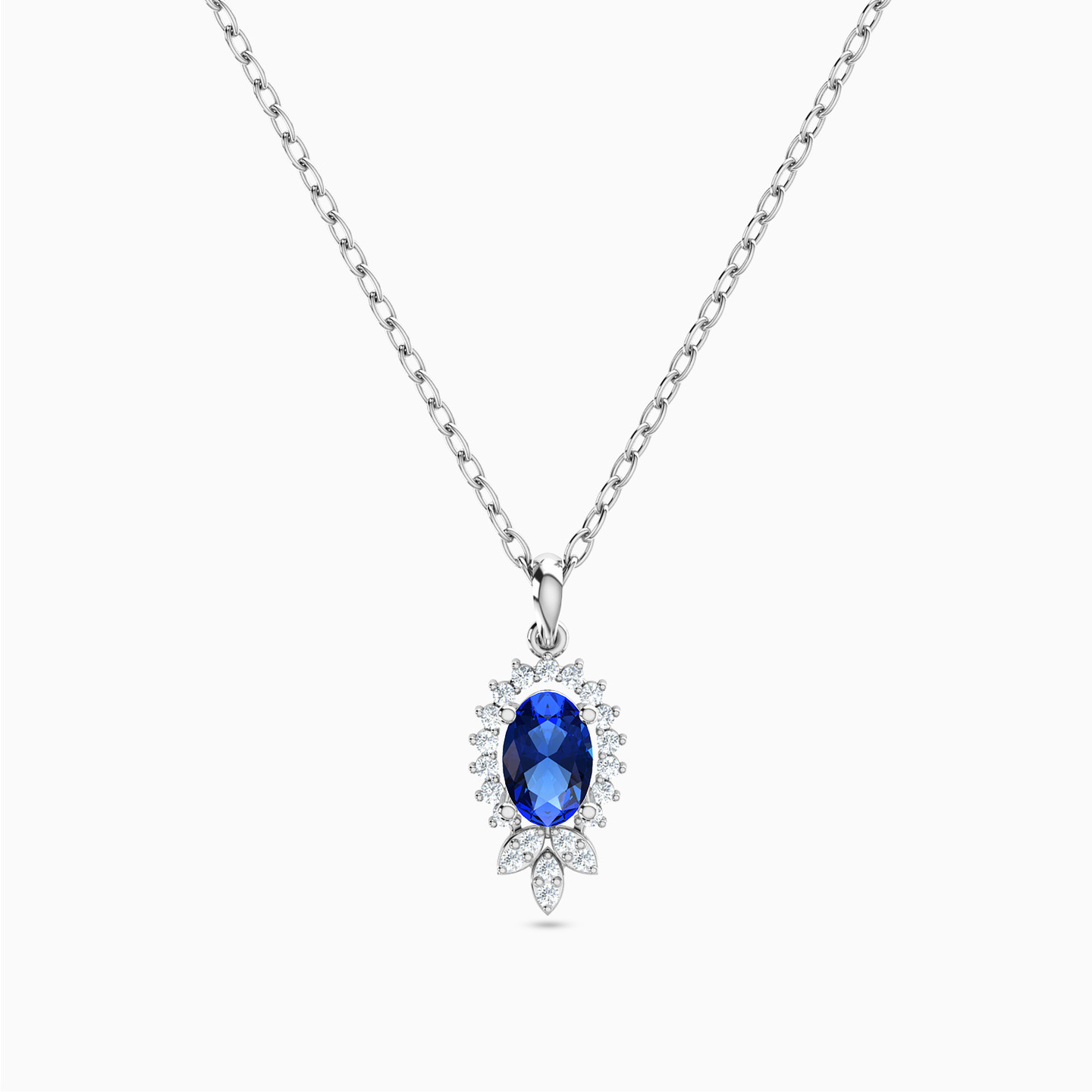 Oval Diamond & Blue Stone Necklace in 18K Gold