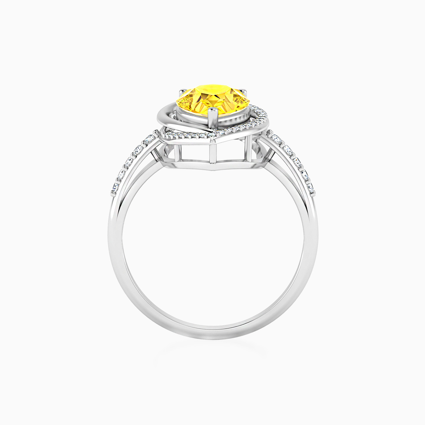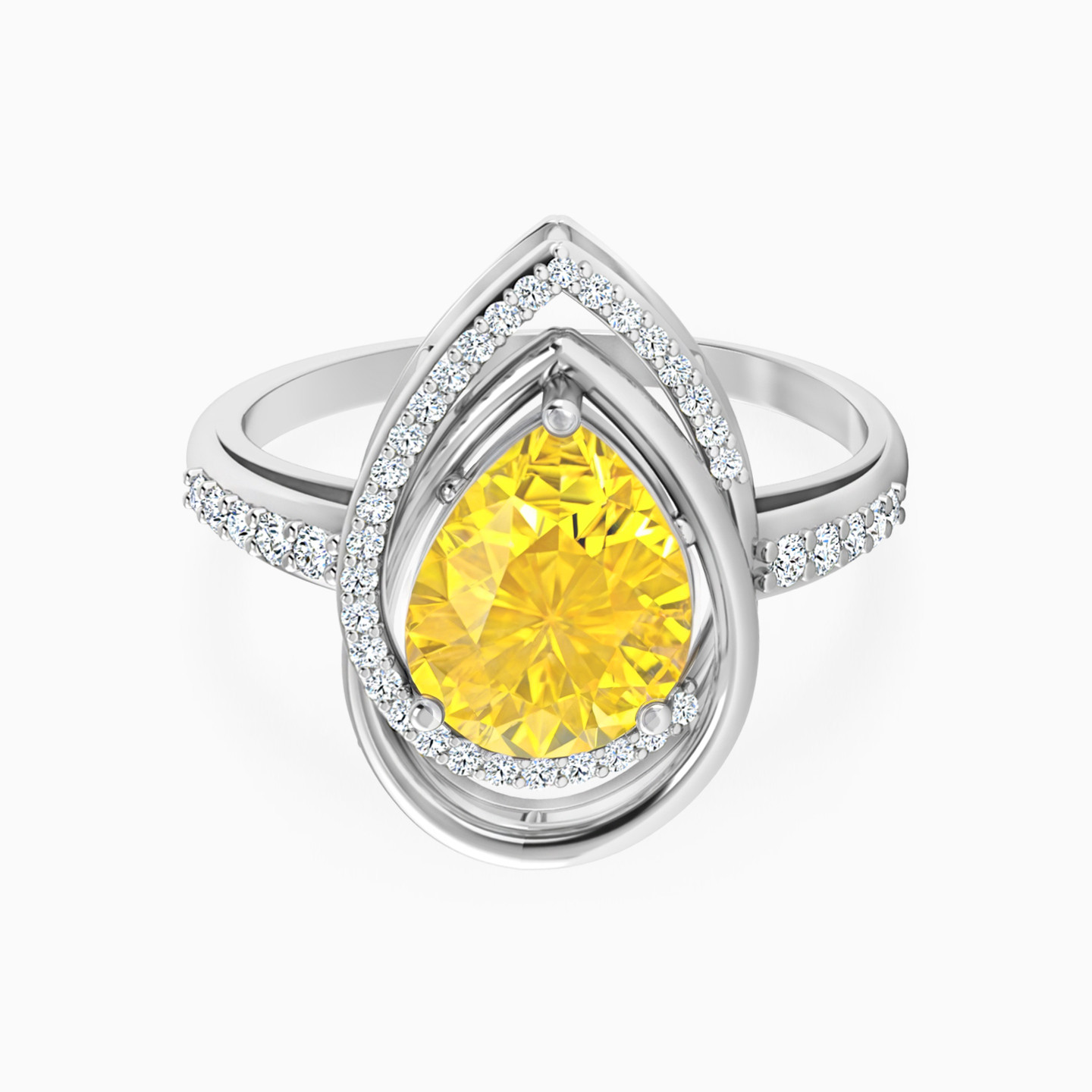 A stunning ring from L'azurde Diamonds for those special occasions. Crafted from 18-karat white gold, this ring features a pear-shaped frame in the center lined with 0.20-carat brilliant cut diamonds, and nestled within it is a dazzling 0.29-carat pear-shaped yellow stone. Style this ring with a sunshine yellow slip dress to make a statement.