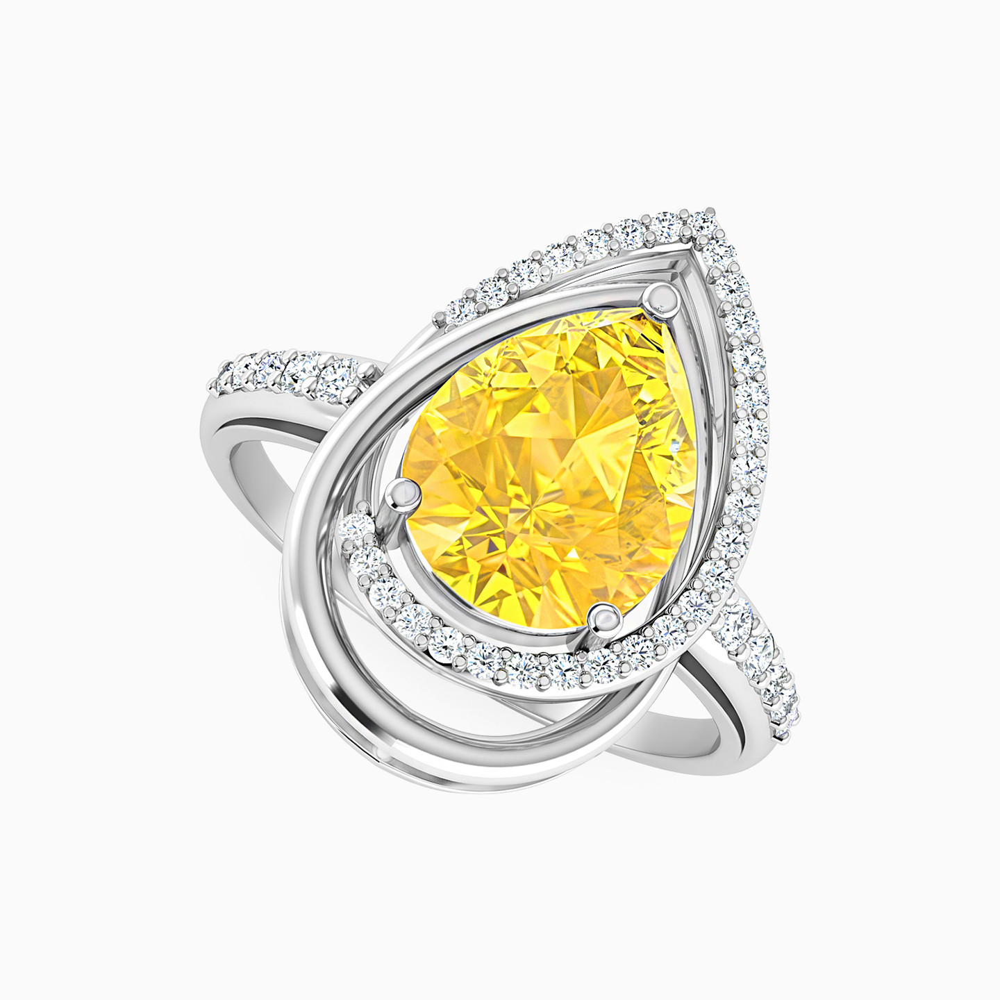 Pear Diamond & Yellow Stone Ring in 18K Gold