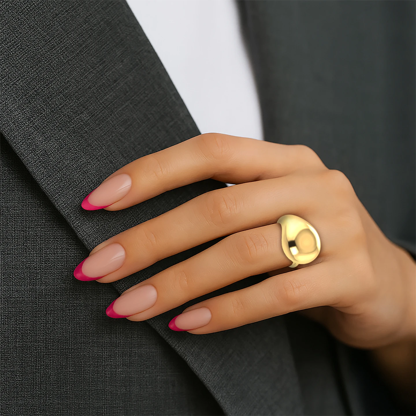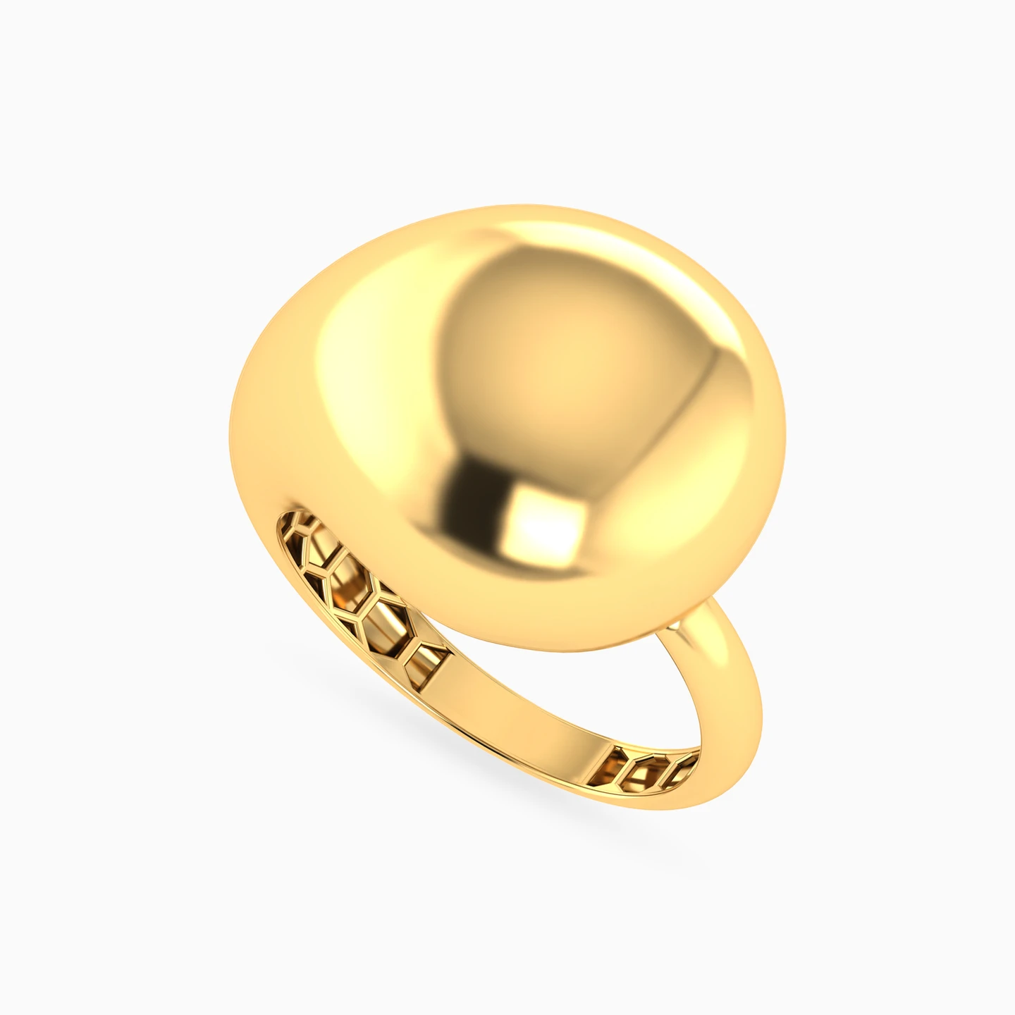 Simplicity in its most powerful form. This Lazurde Gold statement ring features a bold, polished dome design that catches the light with every movement, exuding modern elegance and quiet confidence. A versatile treasure that makes its presence felt without a single stone.