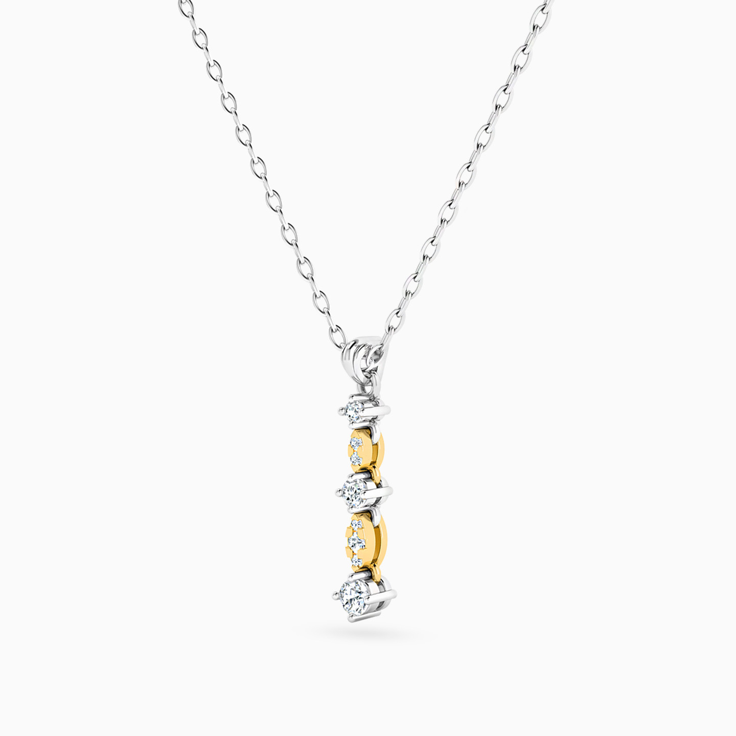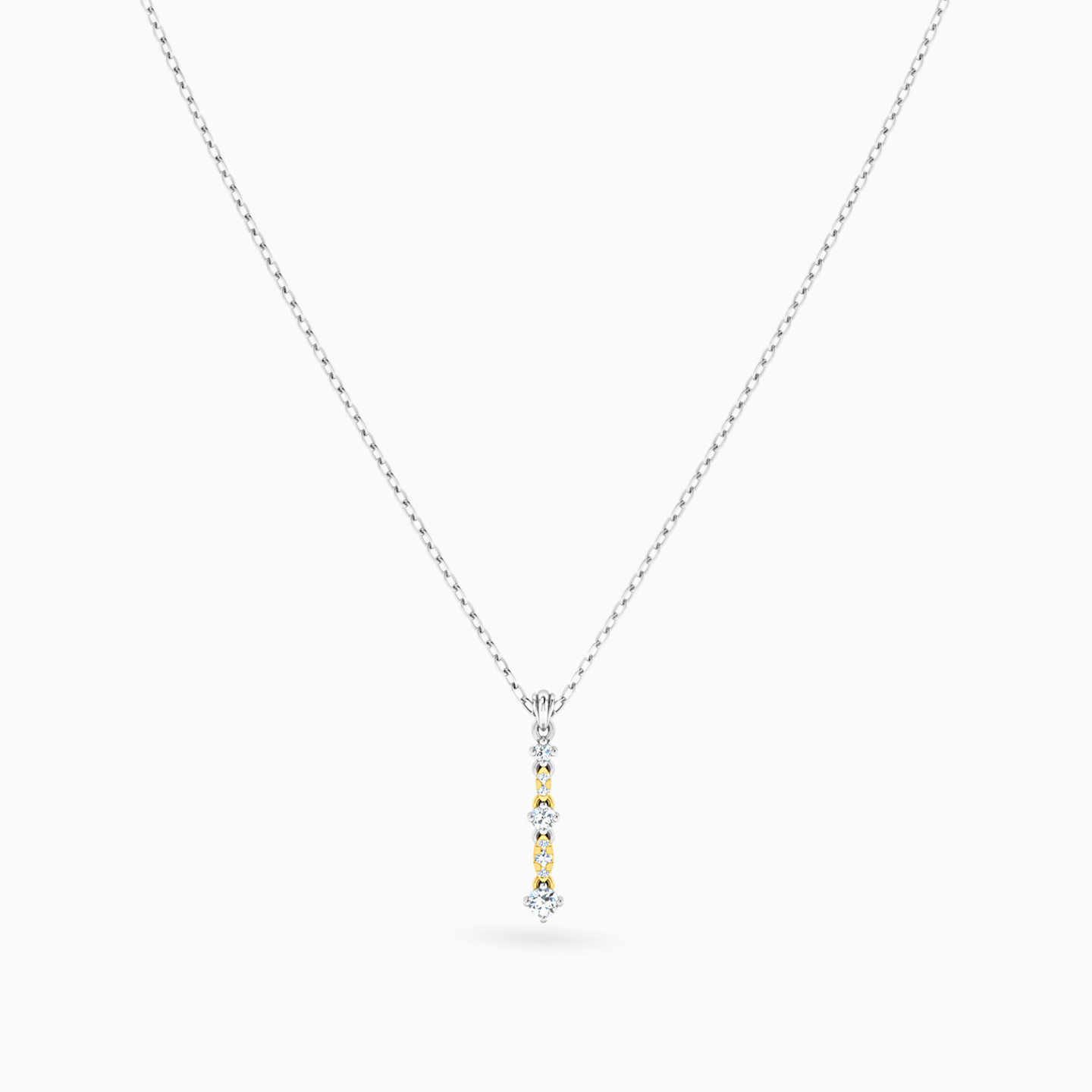 Add a little luster and a lot of glamour to your look with this striking pendant necklace from L'azurde Diamonds. Sleek and sophisticated, this elegant linear diamond pendant features dainty diamond accents in a stunning mix of 18-karat white and yellow gold. We recommend pairing this piece with matching earrings or simple diamond studs for a look that exudes sophistication.