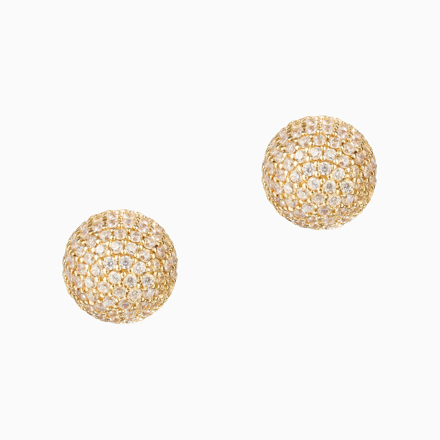 Radiate elegance and grace wherever you go with this exquisite pair of stud earrings from L'azurde Gold. Crafted from lustrous 18-karat yellow gold, these studs feature beautiful globes sparkling with round cubic zirconia set meticulously on delicate yellow gold prongs, making each stud look like a cluster of stars weaved together in threads of gold. A perfect pick for occasions when you need something regal and sophisticated.