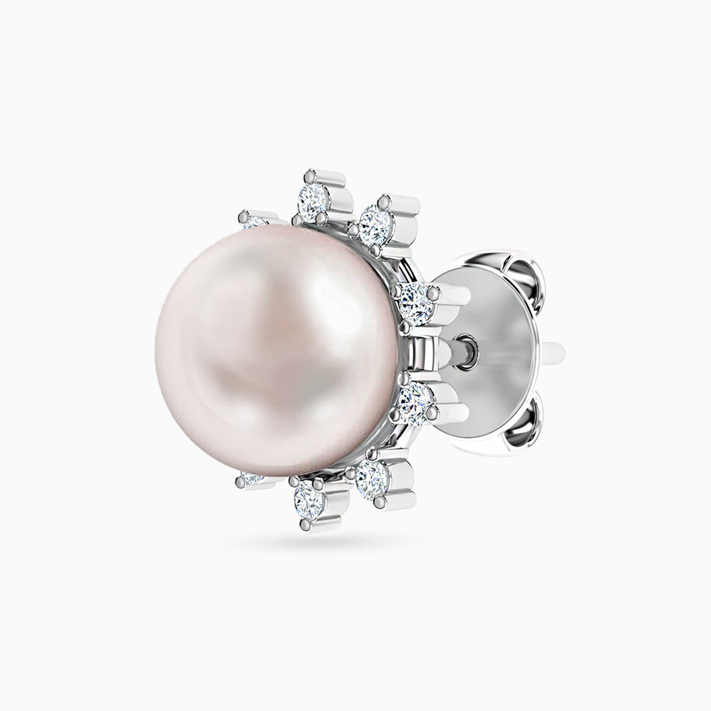 Light up any room you enter by wearing these beautiful pearl and diamond earrings from L'azurde Diamonds. Meticulously crafted in a sun shape with a pearl at the center and brilliant cut diamond rays, these elegant 18-karat white gold stud earrings have irresistible feminine allure. A timeless addition to your daytime looks and chic enough to complement your dressiest outfits, these earrings are a wardrobe staple.