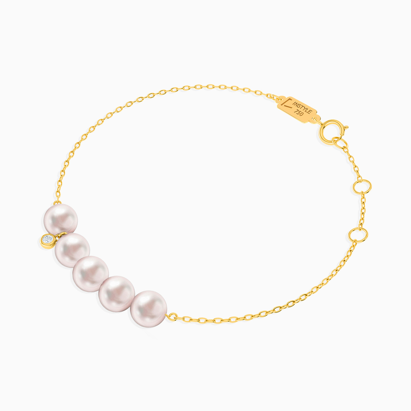 Round Pearls Chain Bracelet in 14K Gold