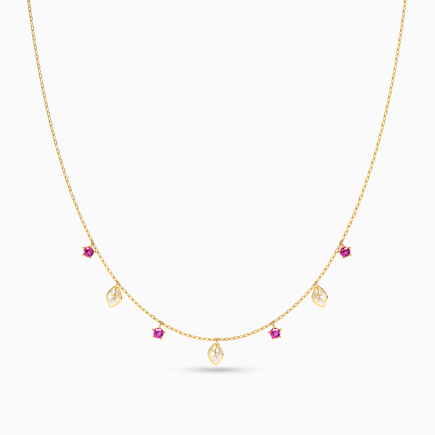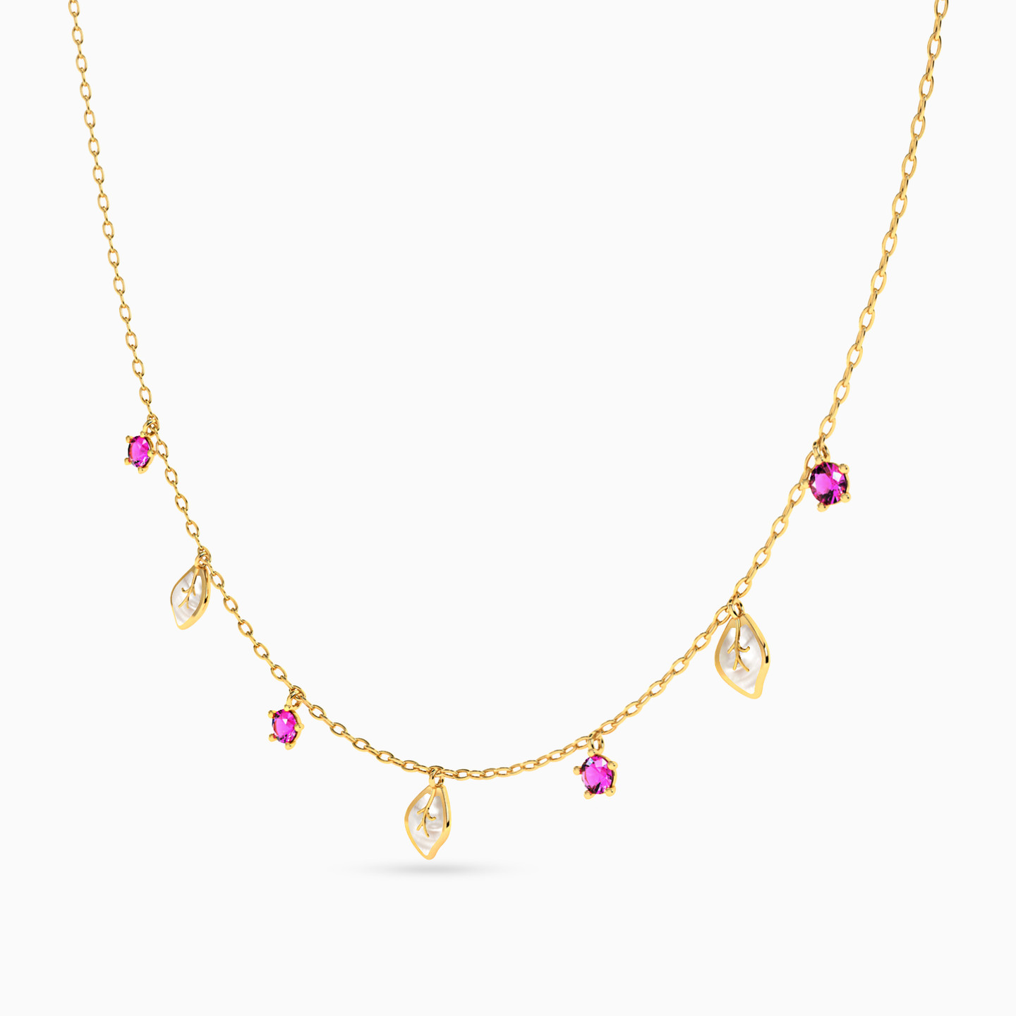 Offer someone special stunning flowers that they will cherish forever with this elegant chain necklace from L'azurde Instyle. Beautifully crafted in 14-karat yellow gold, this dainty necklace features pretty colored stone floral motifs with sparkling accents lending additional radiance to the look. This captivating piece is an ideal everyday choice to add a touch of sweet sophistication to casual, office or evening attire.