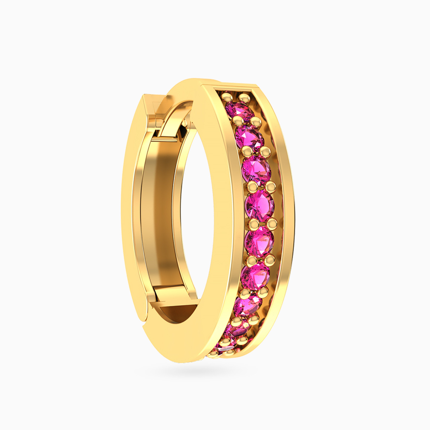 Round Shaped Rose Stone Hoop Earring in 14K Gold - 1 Piece