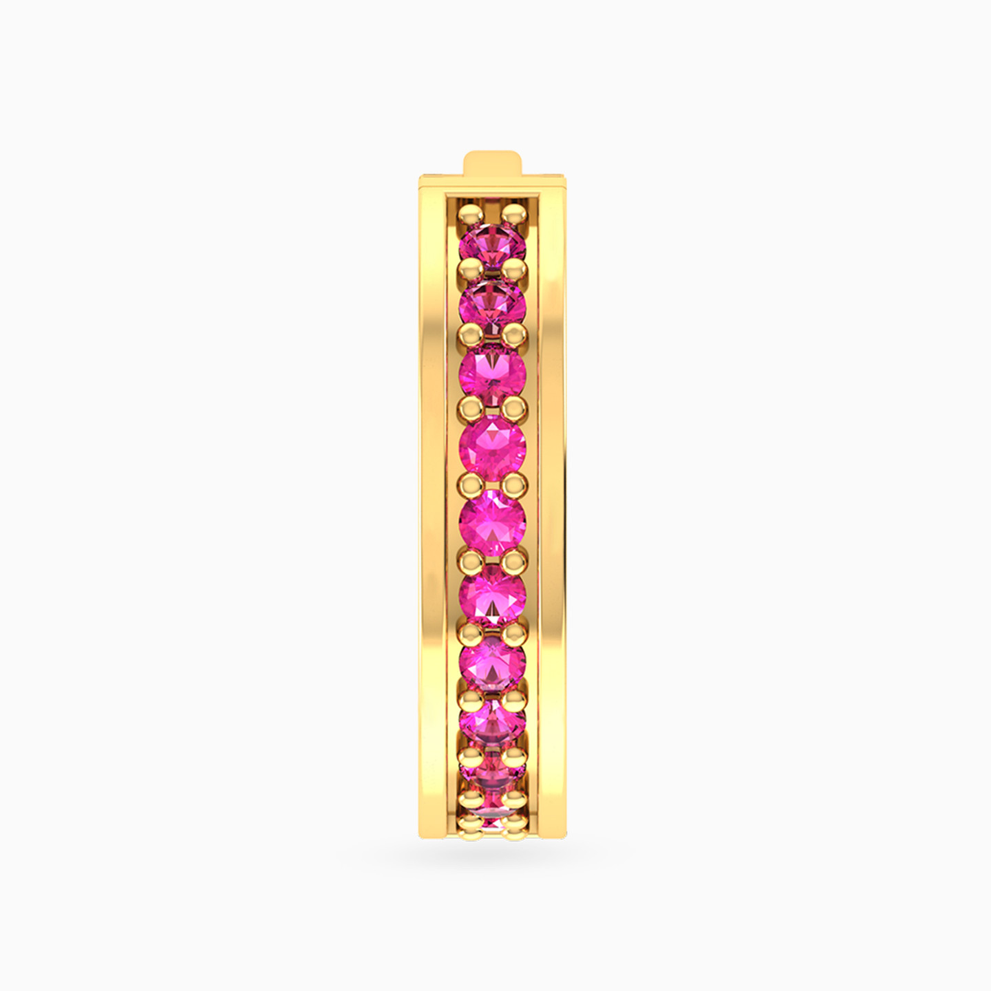Add a pretty pop of color to your looks by wearing this everyday earring from Miss L'. Stunning worn alone or paired with yellow gold hoops or studs, this eye-catching 14-karat yellow gold hoop earring features captivating colored stones down the front. We love how this feminine earring brings modern color and sparkle to any outfit.