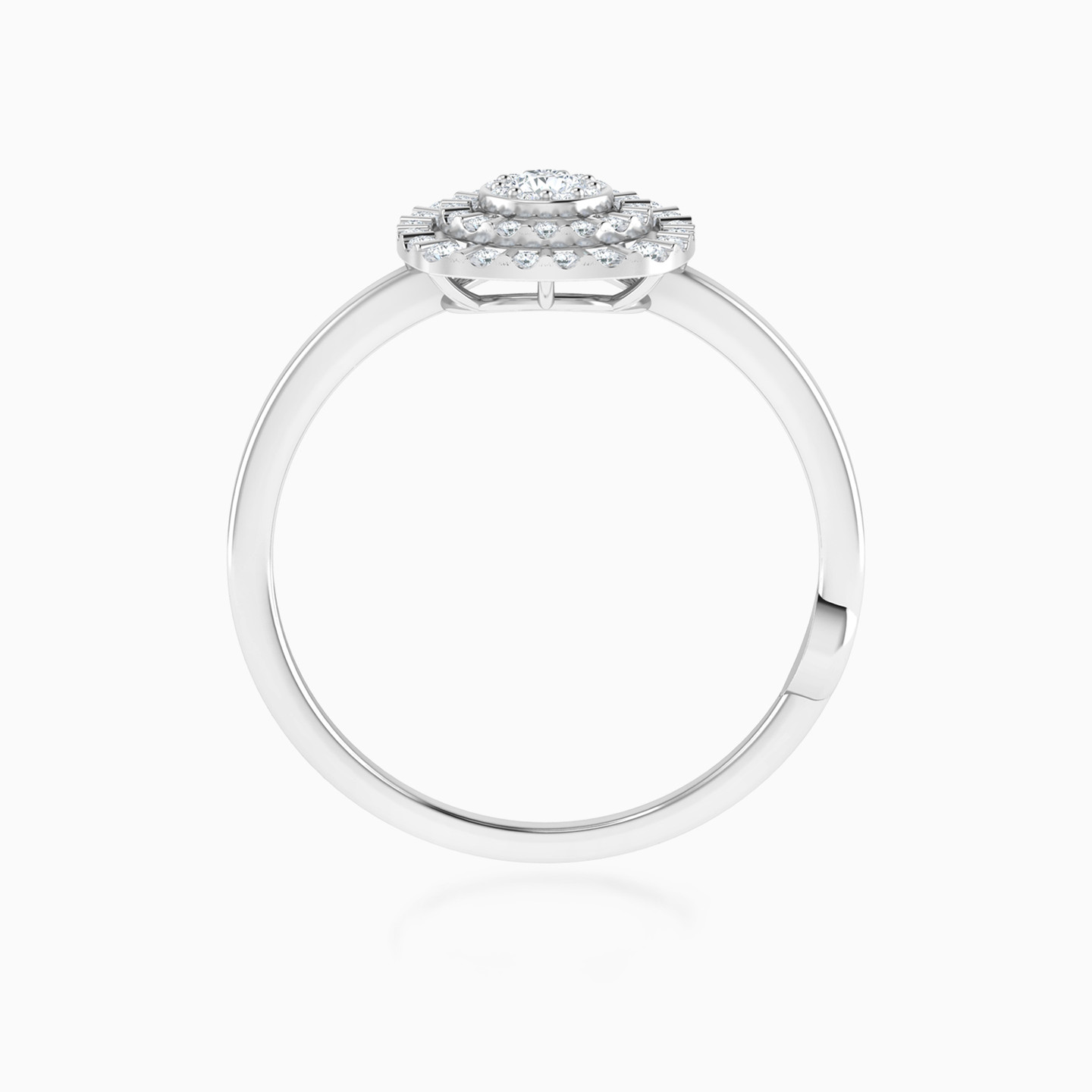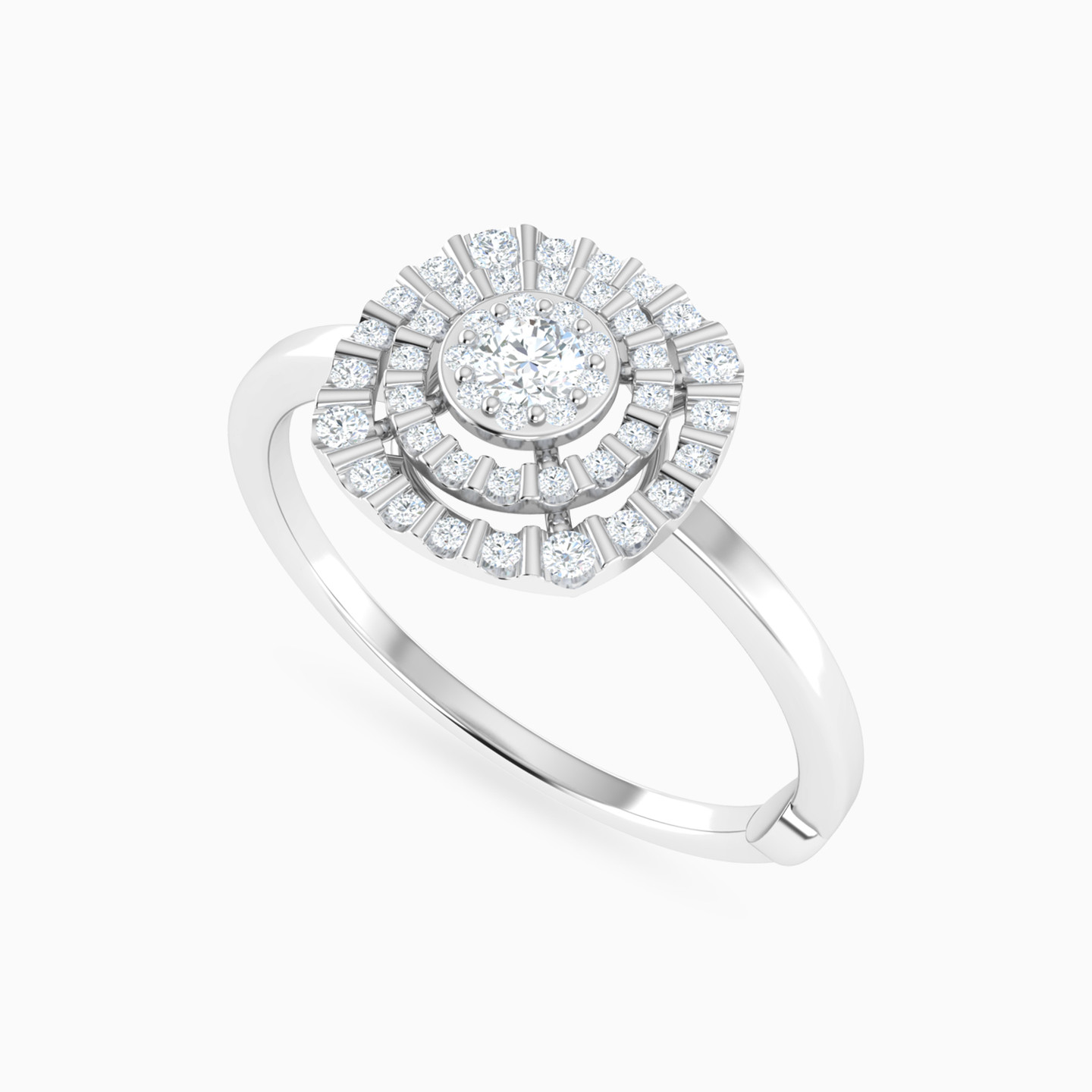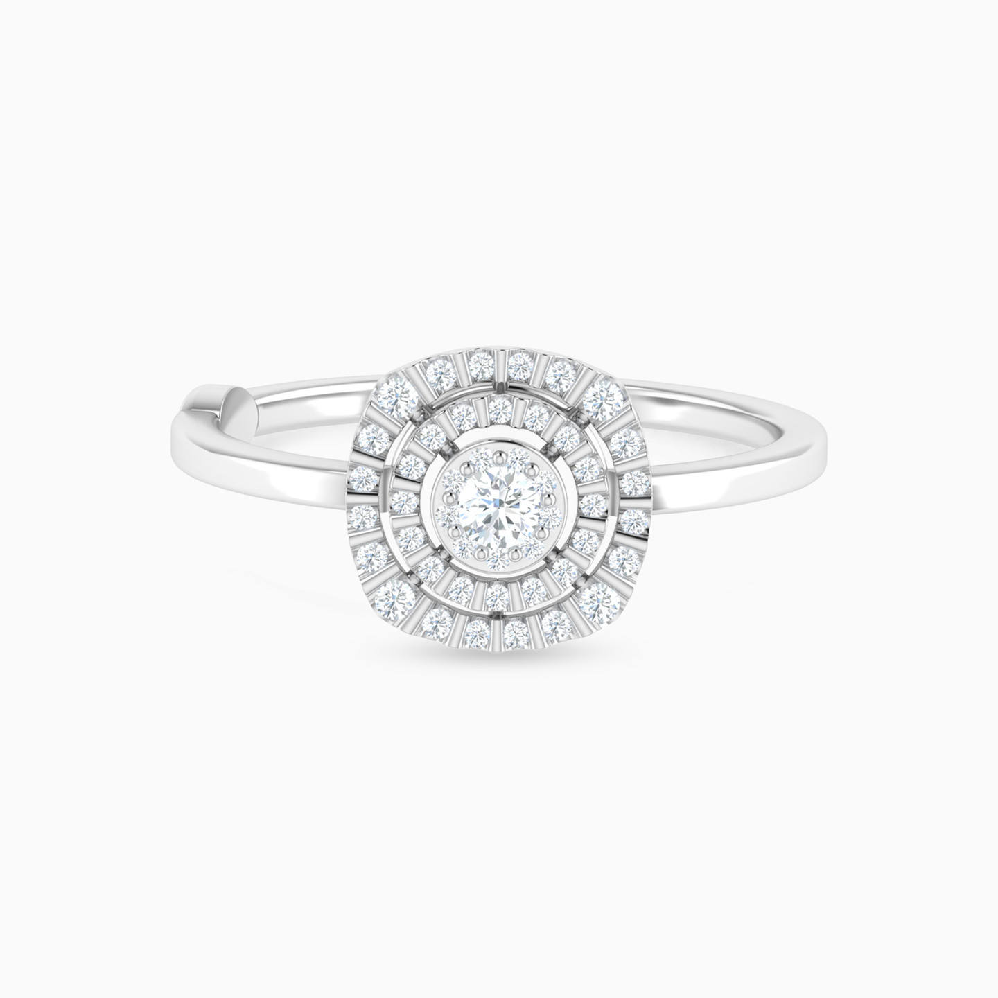 A sculpted harmony of brilliance. This Lazurde Diamond ring from the Halo Collection features a rounded square silhouette, layered with two radiant halos of baguette and round diamonds. Contemporary yet timeless, it’s a bold expression of elegance—perfect for those who favor artistic geometry and standout sparkle.