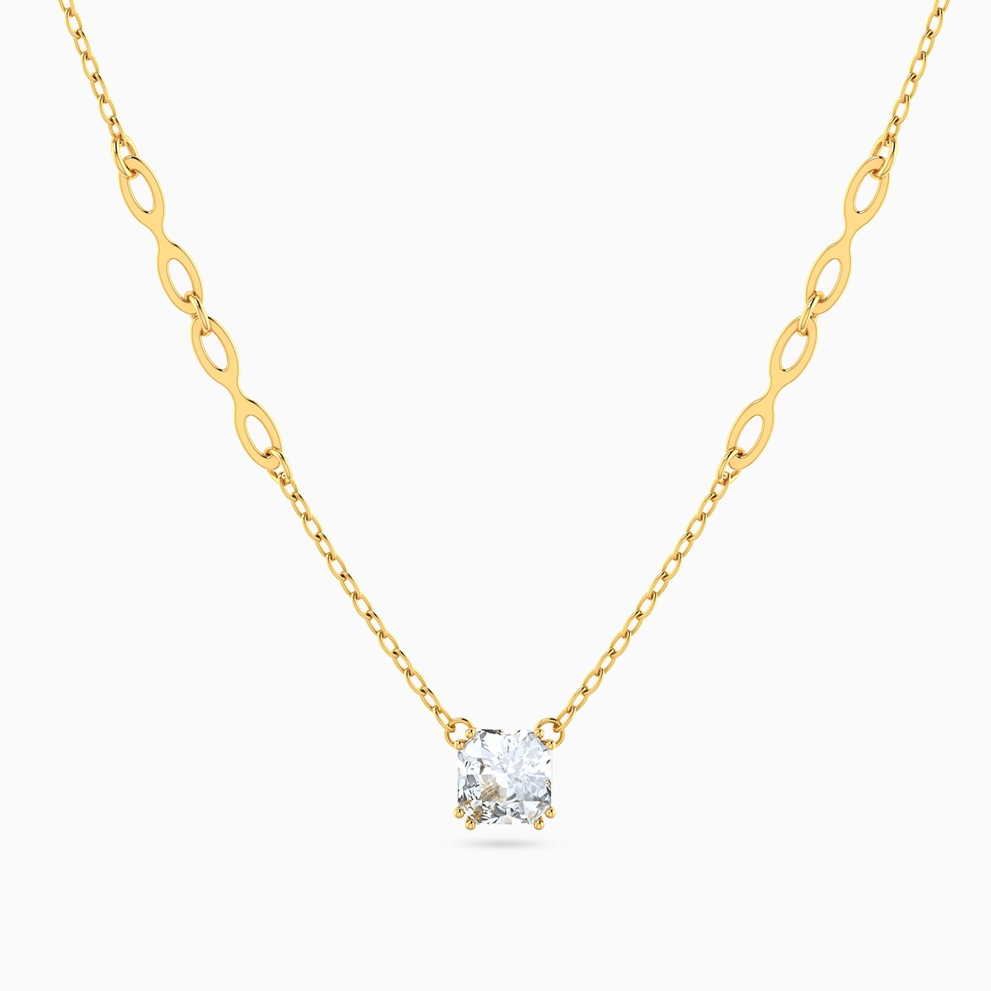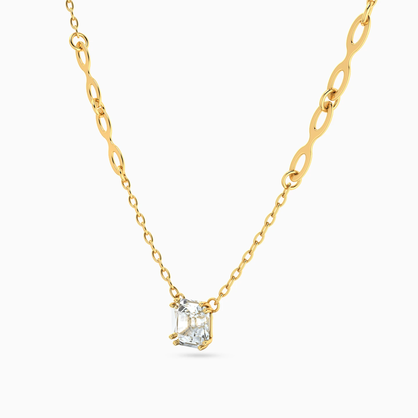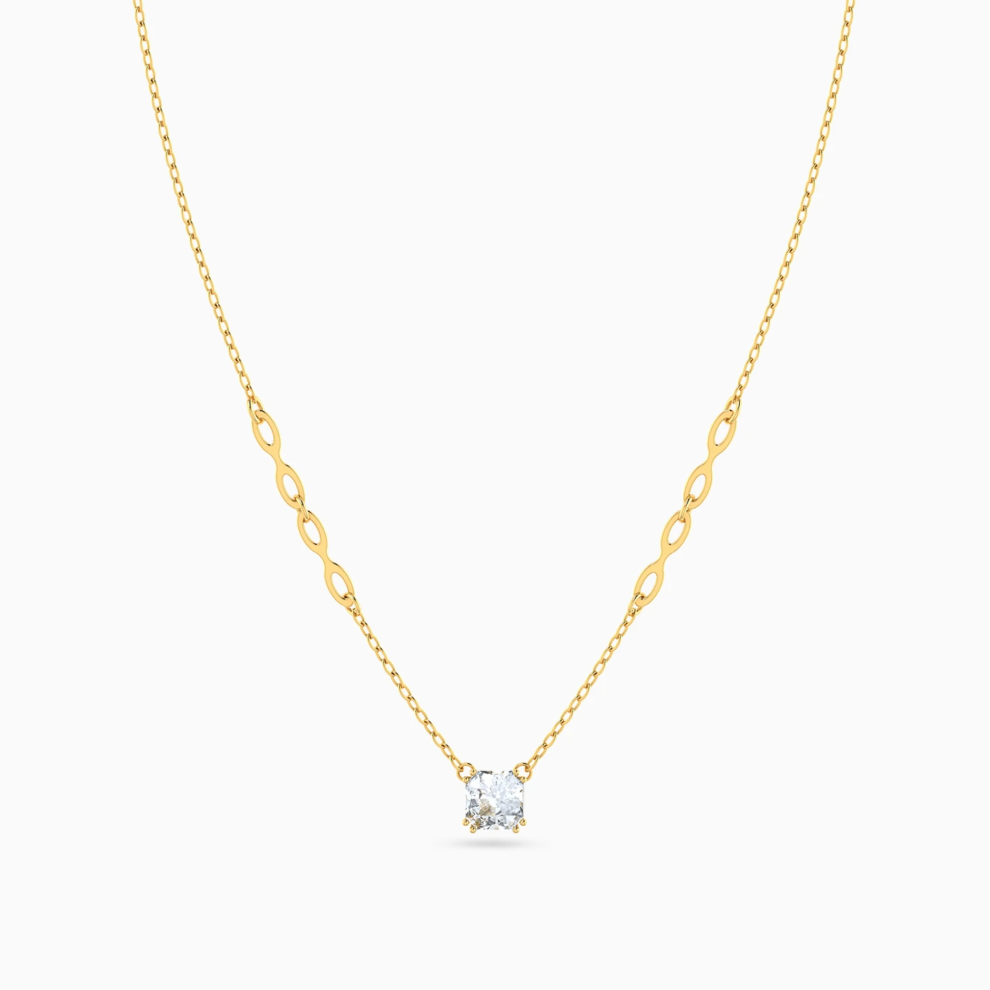 This necklace showcases a sleek chain in 14K yellow gold with a radiant square-cut cubic zirconia stone in the center from Instyle. Its modern rectangular links enhance its contemporary design, making it an elegant choice for any occasion.