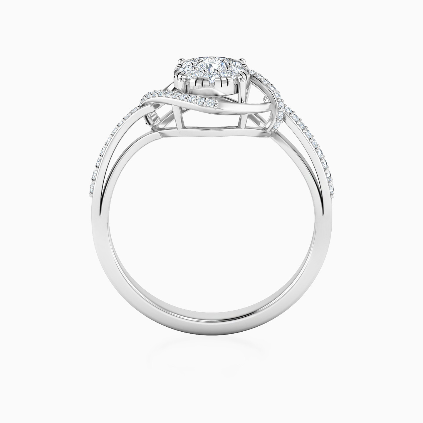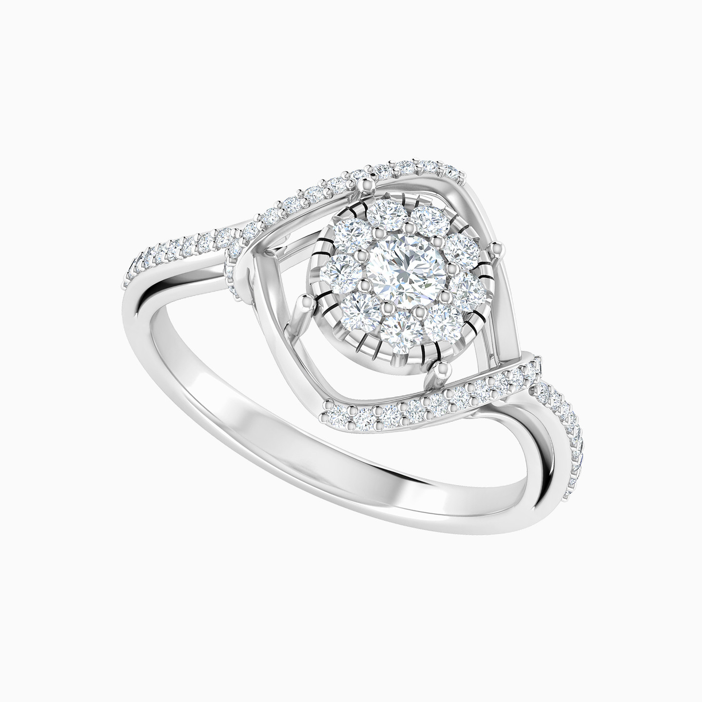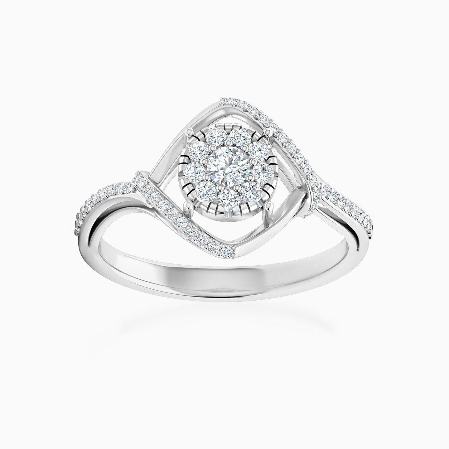 This ring from L'azurde Diamonds makes an elegant and sophisticated addition to your collection. Crafted from 18-karat white gold, this ring features a lovely diamond-shaped frame in the center lined with sparkling brilliant cut diamonds, and nestled within it is a diamond-studded circle. Wear this sparkler for that next party.