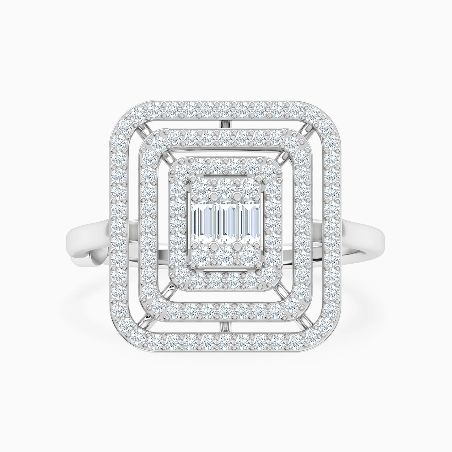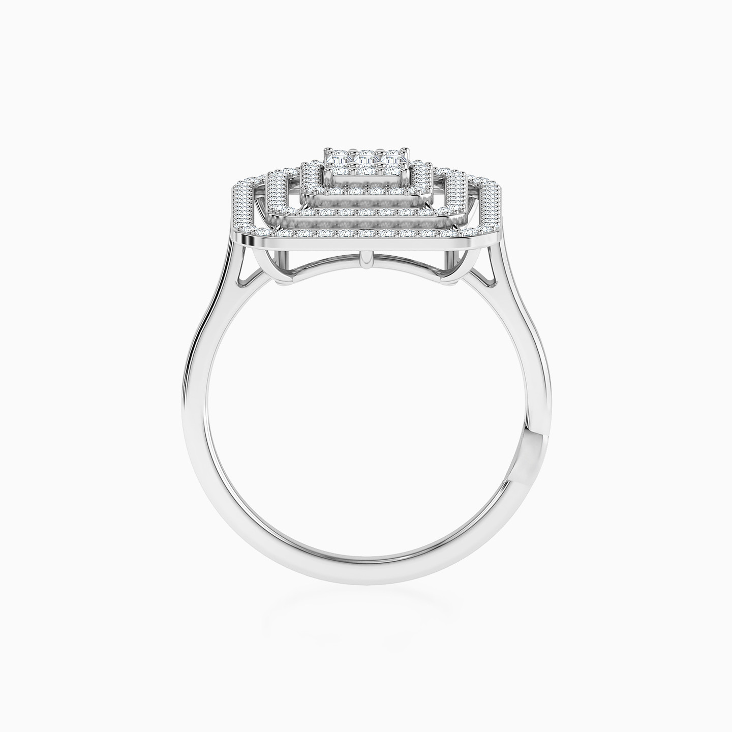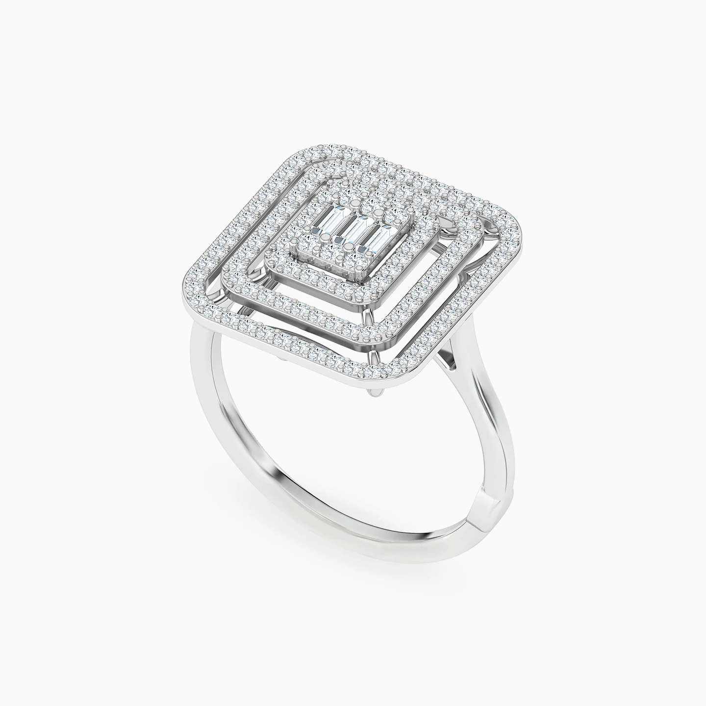 Elevate your look to luxury with this shiny piece from Lazurde Diamonds! Dive into the splendor of Perla's collection with this exquisite ring, beautifully crafted in 18K white gold. The design features a mesmerizing square-shaped pattern, intricately layered and stacked with shimmering diamonds that catch the light from every angle. This lavish piece is a testament to fine craftsmanship and elegant design, making it a perfect choice for those who appreciate the luxurious sparkle in their wardrobe.