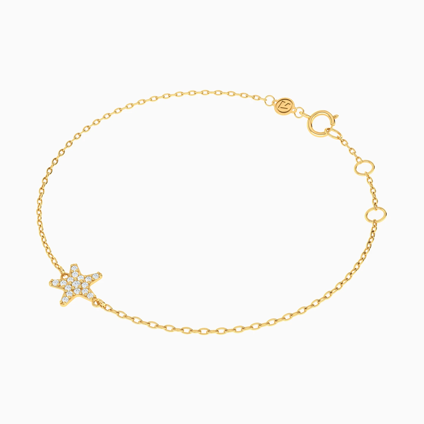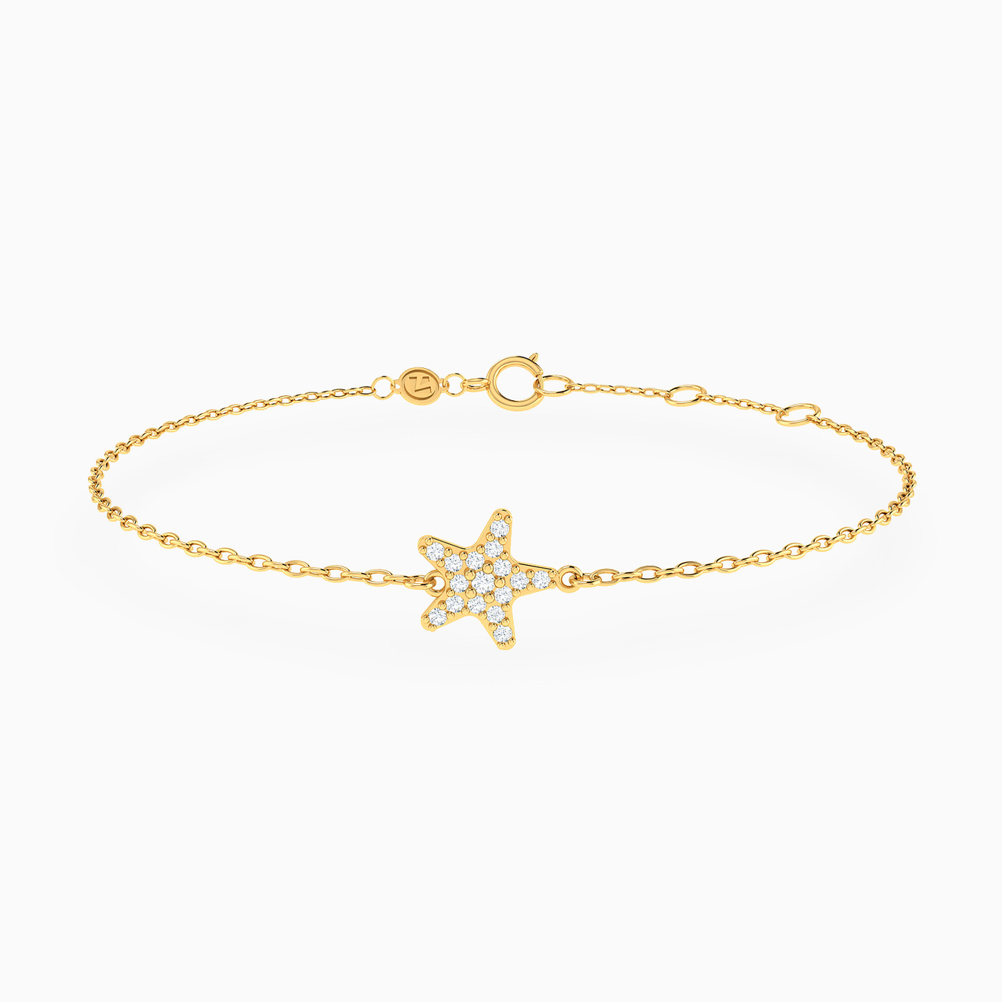 Make a star-studded entrance by wearing this elegant star chain bracelet from L'azurde Instyle. Beautifully crafted in gleaming 14-karat yellow gold, this dazzling bracelet features a star-shaped motif at the center, covered in cubic zirconias for a look that dazzles from every angle. We suggest pairing this piece with the matching star pendant necklace for the perfect finishing touch to any ensemble.