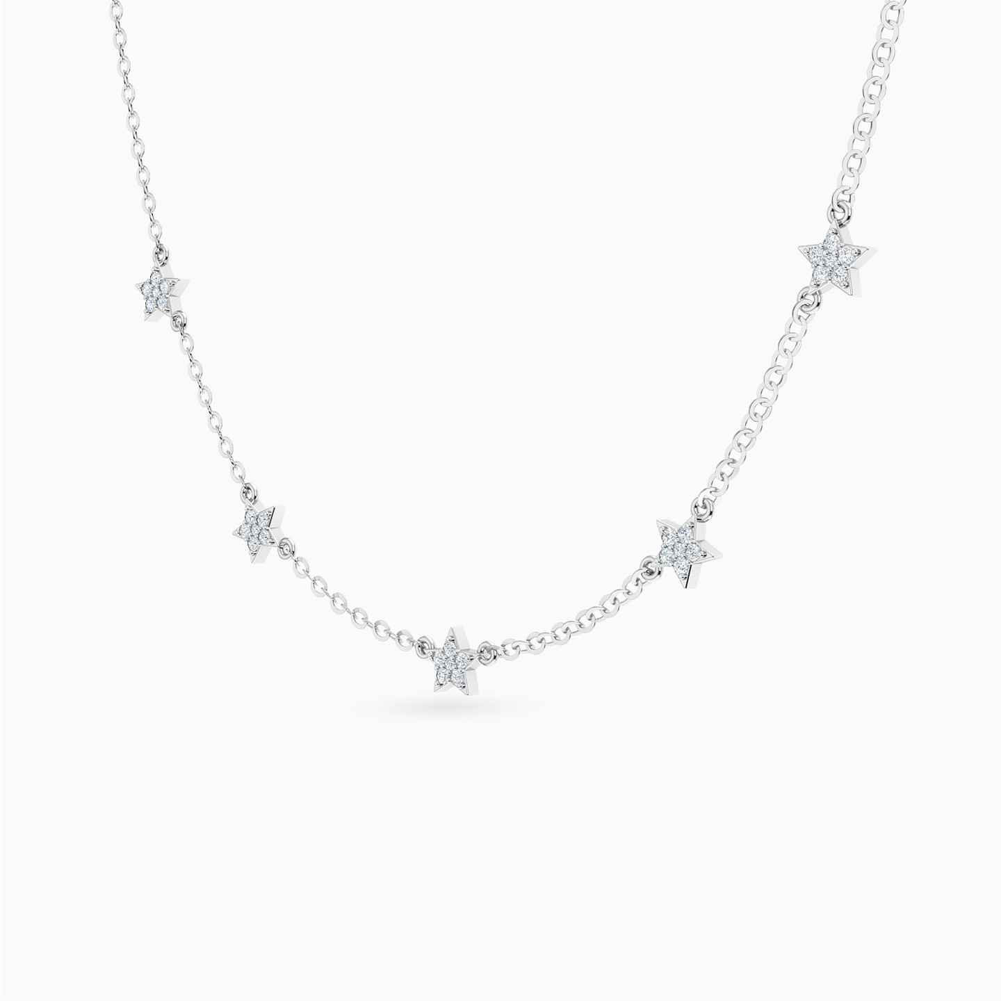 Stars that dance with your every move. This Lazurde Diamonds necklace features a delicate chain adorned with diamond-studded stars, each shining with celestial brilliance. A luminous piece that celebrates dreams, light, and the beauty of becoming — a perfect gift for someone who inspires.