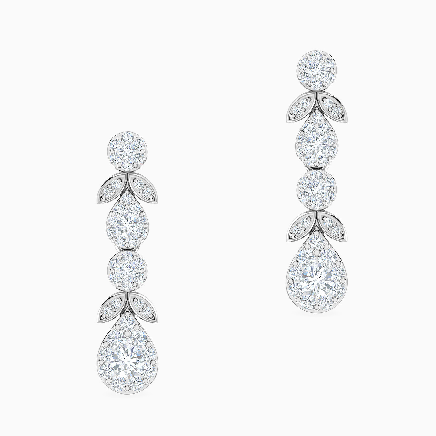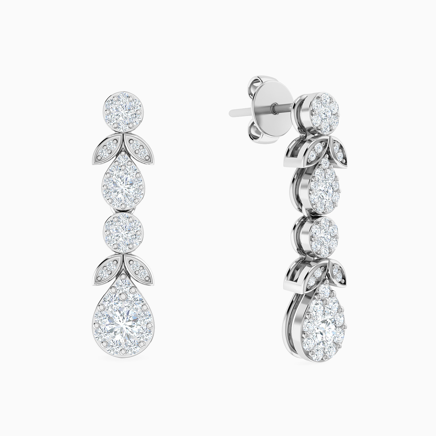 Radiate elegance with these dazzling 18k white gold drop earrings by Lazurde Diamonds. Featuring intricate diamond-studded floral and marquise shapes cascading into a teardrop-shaped diamond charm, these earrings are a timeless piece designed to add sophistication and sparkle to any formal look.