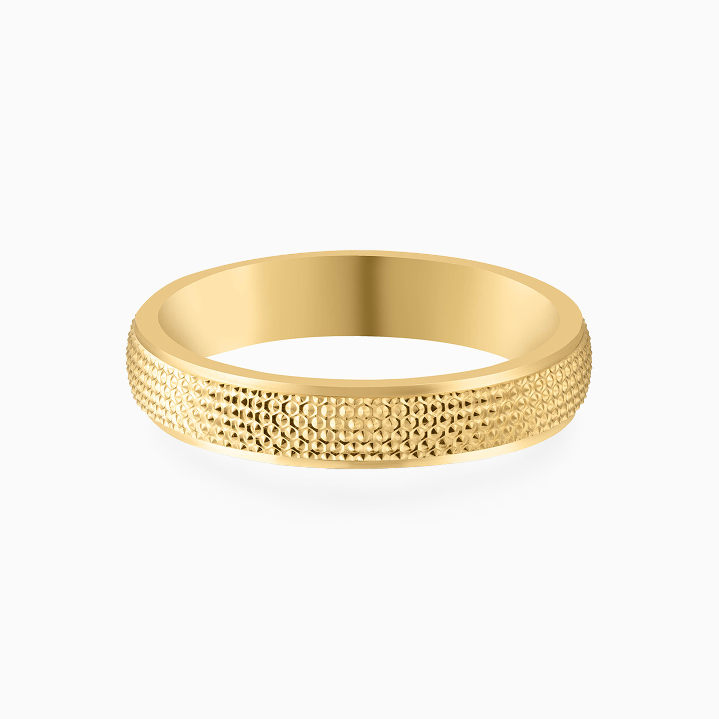 Encircling her finger in sophisticated style, this gorgeous wedding band from L'azurde Gold has dainty honeycomb-like dotted details that add to its feminine allure. A testament to the exquisite craftsmanship of L'azurde jewelry, this beautiful wedding band is crafted in 18-karat yellow gold, shimmering with her every move. It will seal your vows with a wow effect and work beautifully on her hand, whether she chooses to wear it by itself or stacked with other rings.