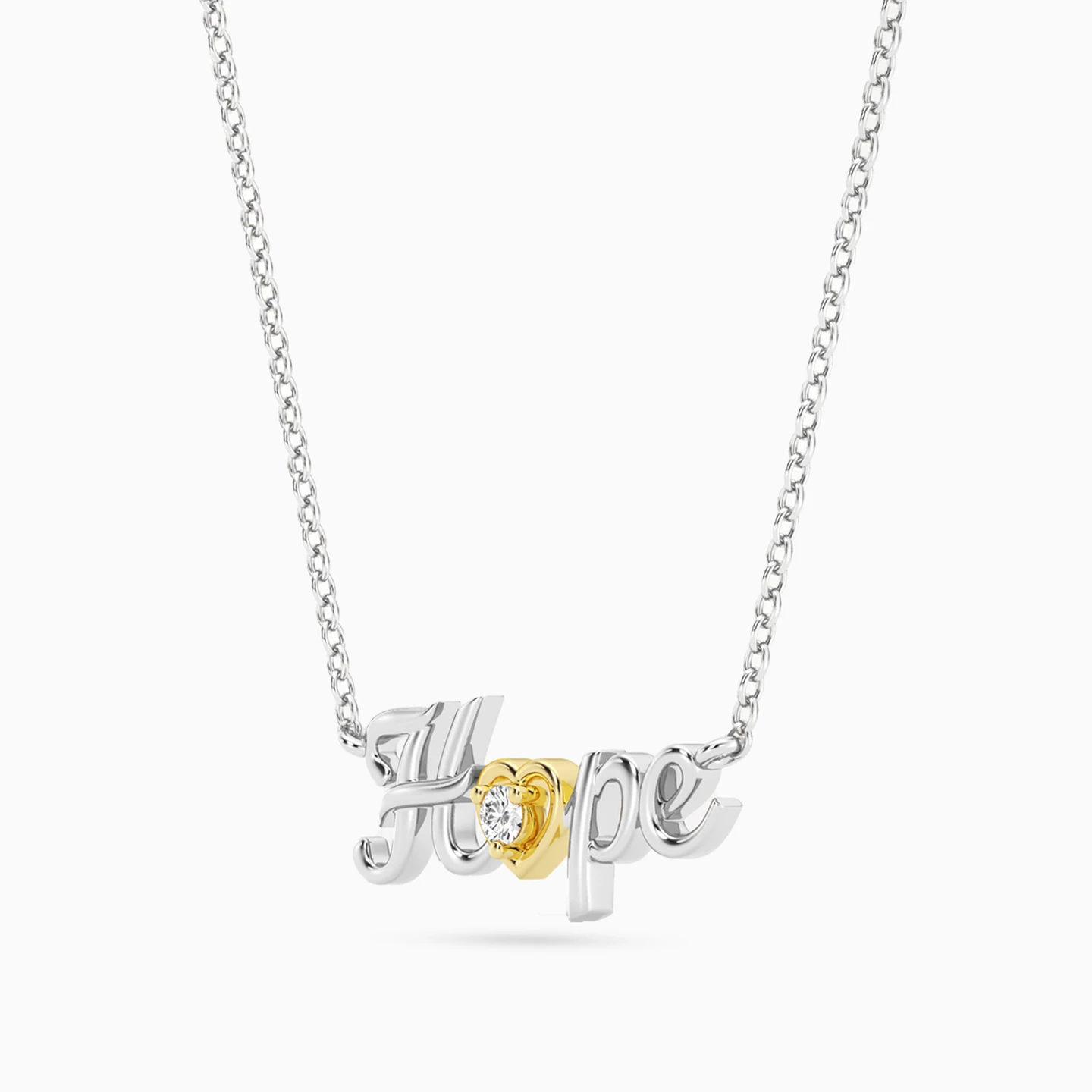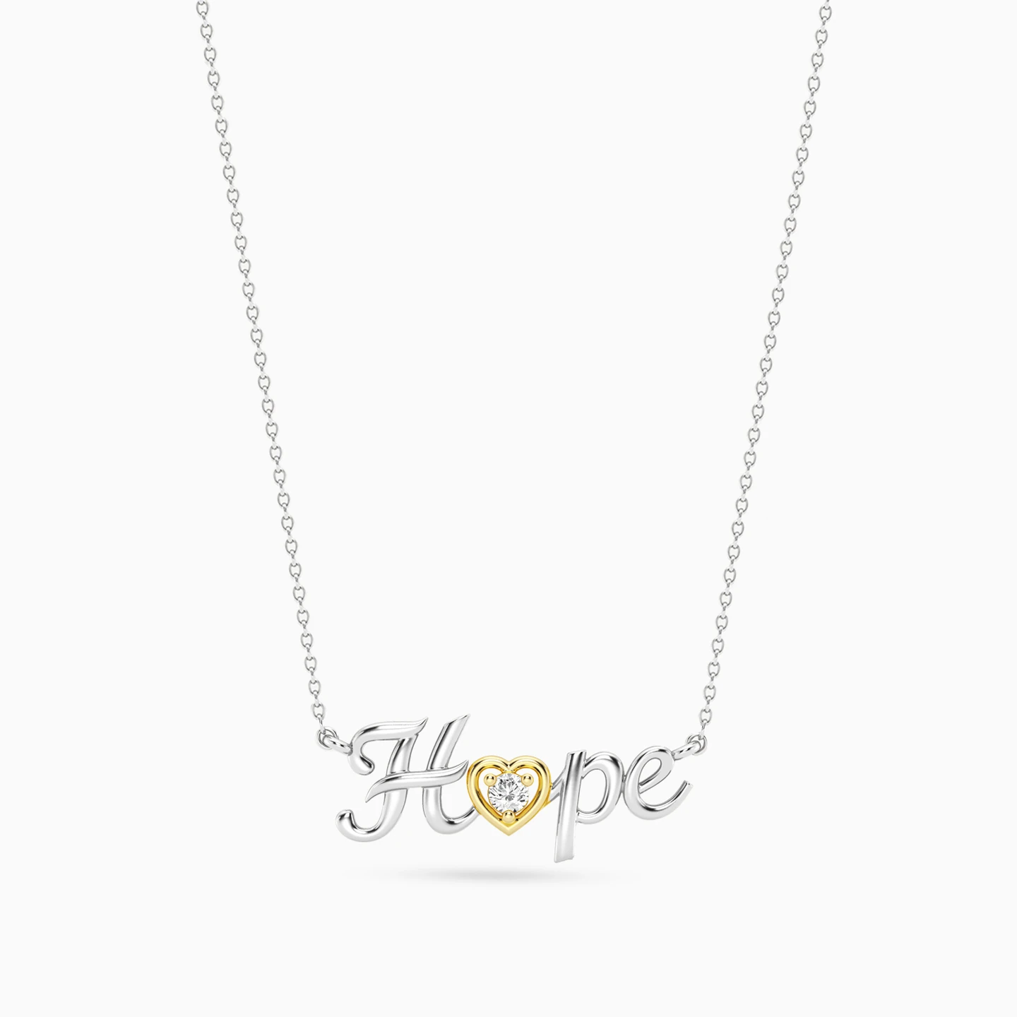 Discover affordable glamour and timeless style with this piece from Waves! This sterling silver necklace shines with a delicate chain and a graceful “Hope” motif, highlighted by a charming gold-plated heart set with a brilliant lab-grown diamond at its center. A symbol of optimism and beauty, it’s the perfect piece to inspire positivity and add a touch of meaningful sparkle to your everyday style or special moments.
