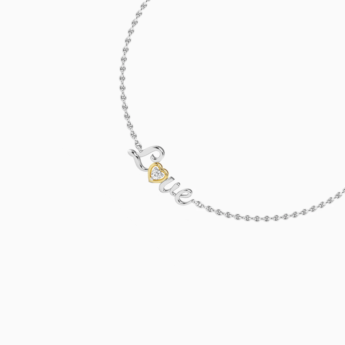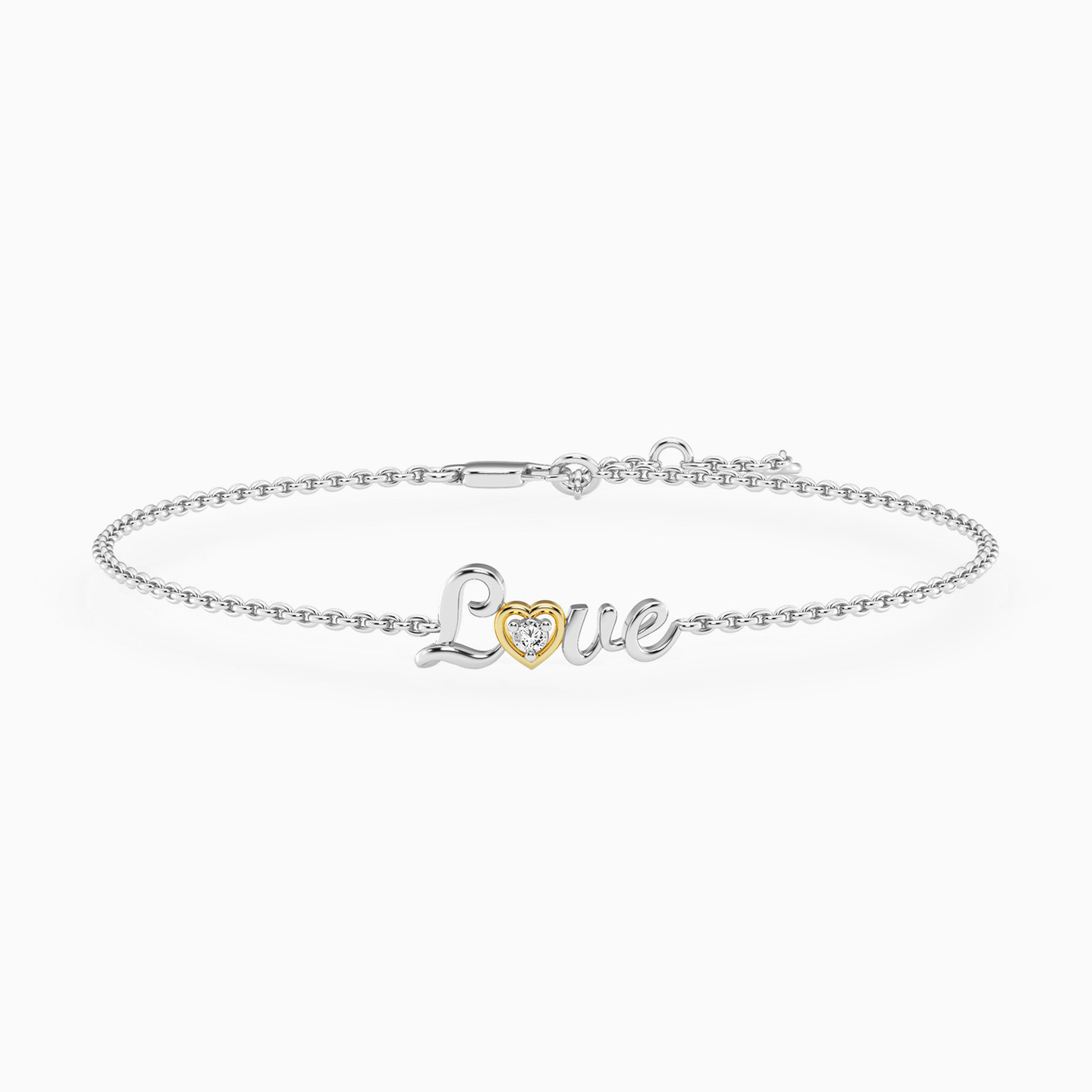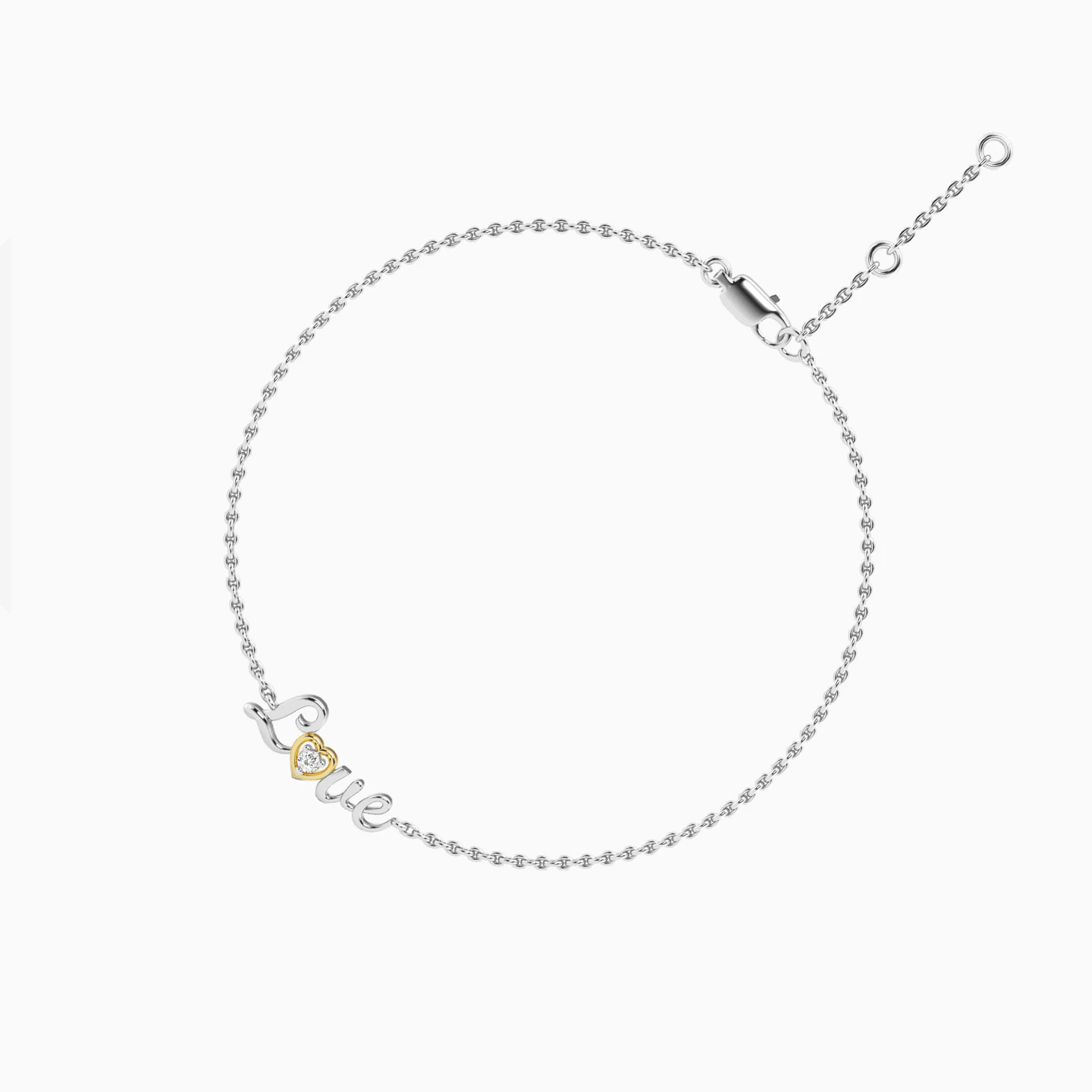 Discover affordable glamour and timeless style with this piece from Waves! This sterling silver bracelet captures the spirit of romance with a delicate chain and the elegant word “Love,” adorned with a gold-plated heart at its center, sparkling with a brilliant lab-grown diamond. A perfect gift for expressing deep feelings, it adds a touch of meaningful shine and graceful charm to everyday wear or special occasions.