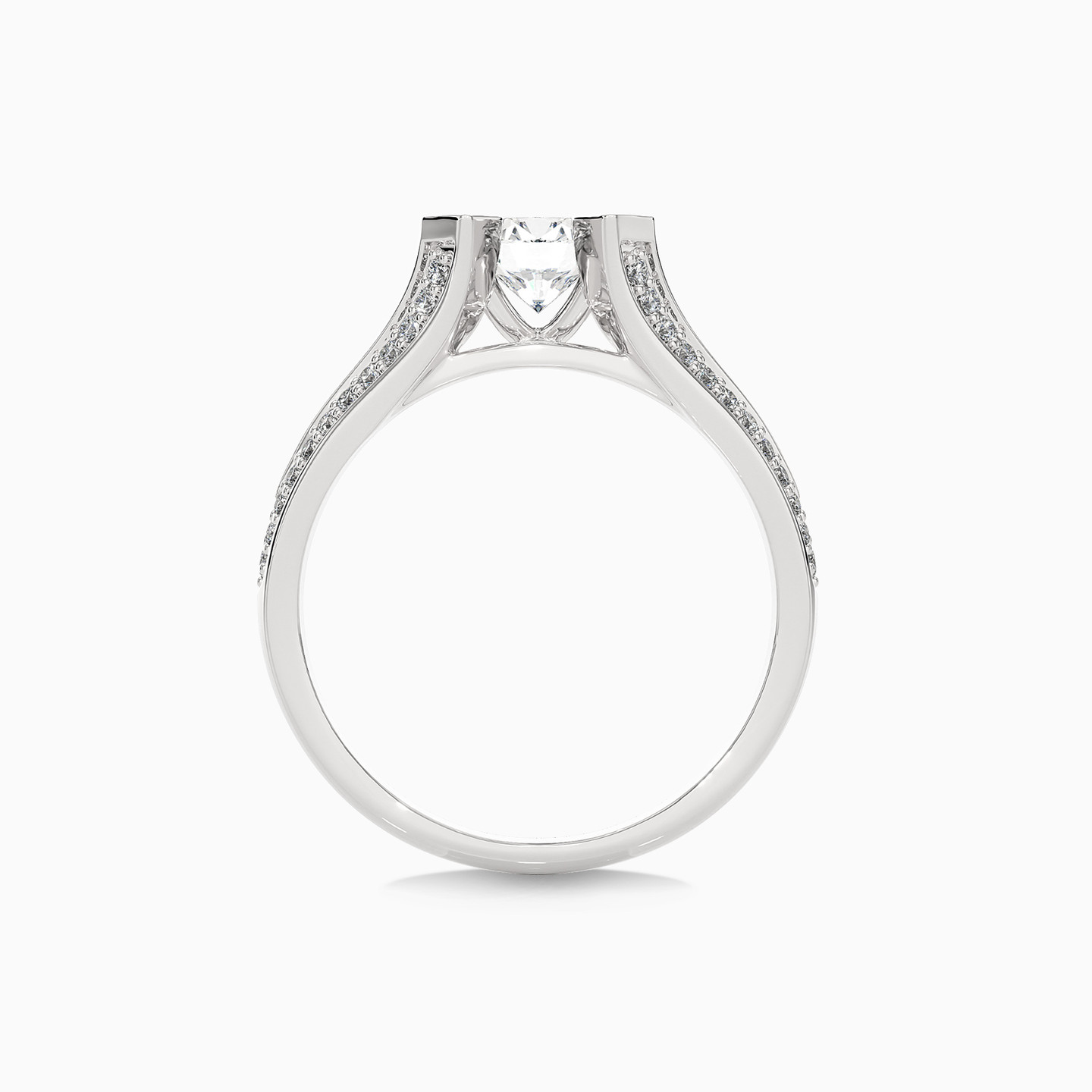 Add a touch of feminine allure to your attire by slipping this sophisticated ring from L'azurde on your finger. Fashioned in 18-karat white gold, this gorgeous ring showcases a Lab Grown Diamond at the center of a split shank diamond-dotted band with exquisitely detailed prongs. Whether you want to brighten up your office outfits or elevate your favorite tee and jean jacket, this gorgeous Lab Grown Diamond ring is the perfect choice.
