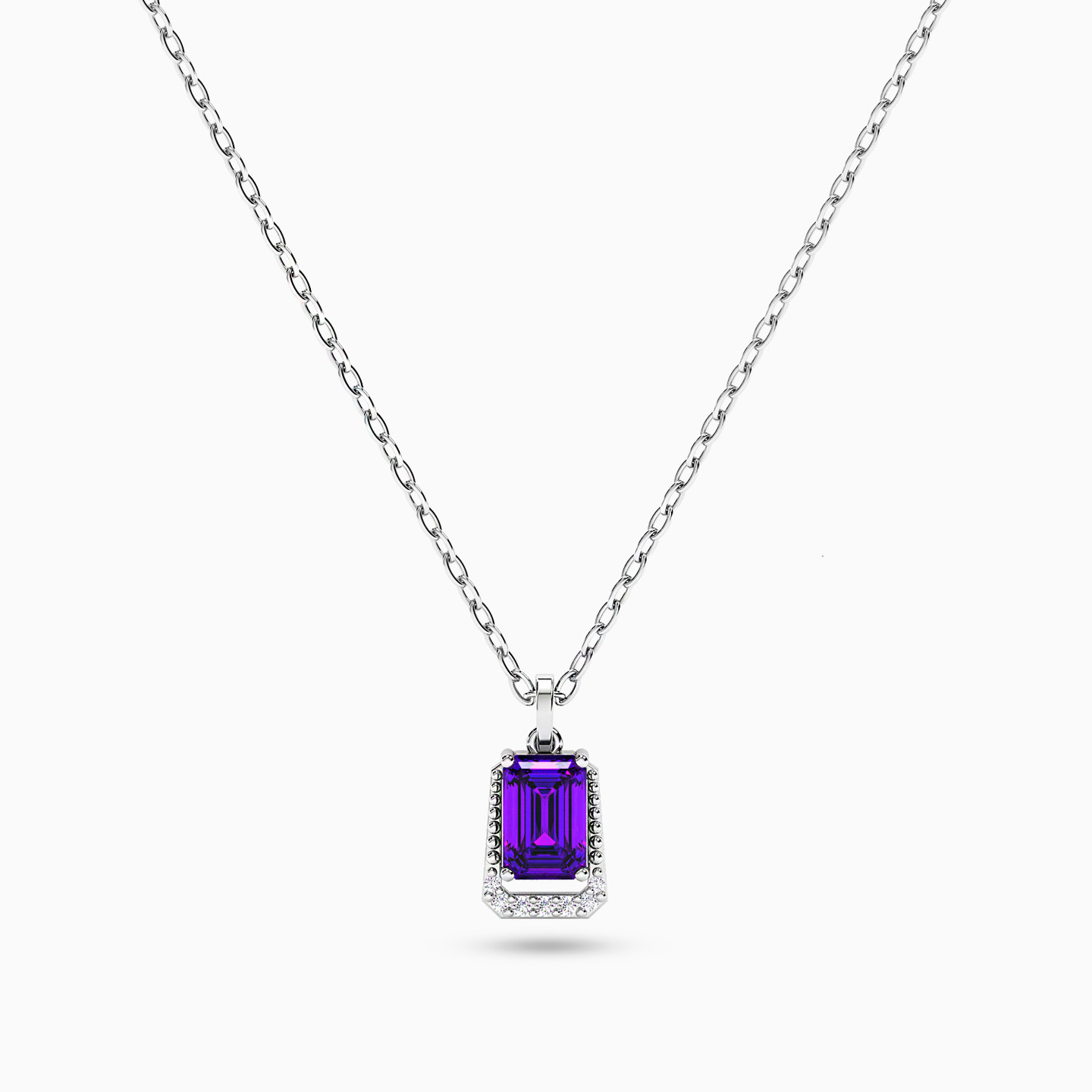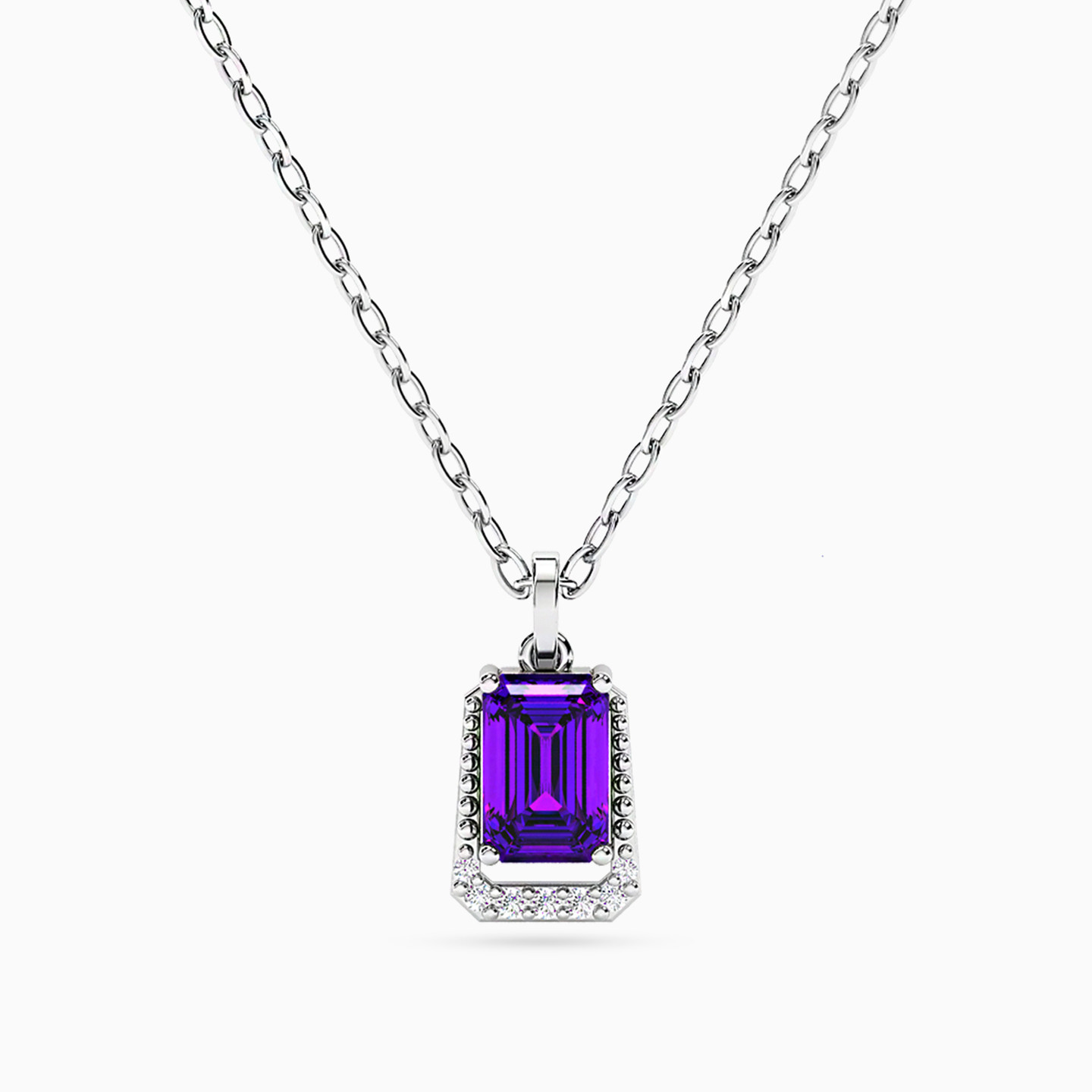 Baguette Diamonds & Purple Stone Necklace In 18K Gold