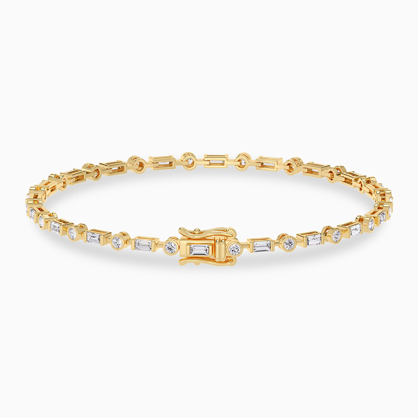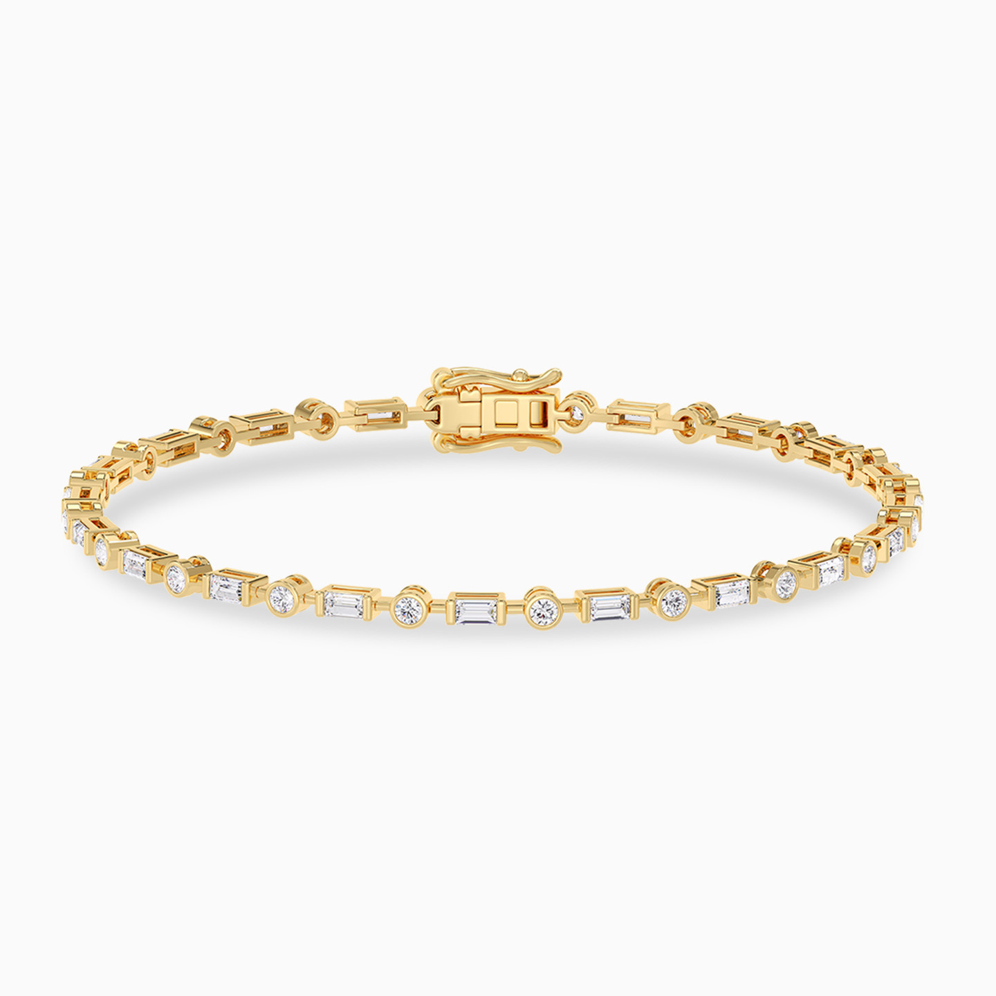 Baguette & Round Diamond Tennis Bracelet In 18K Gold