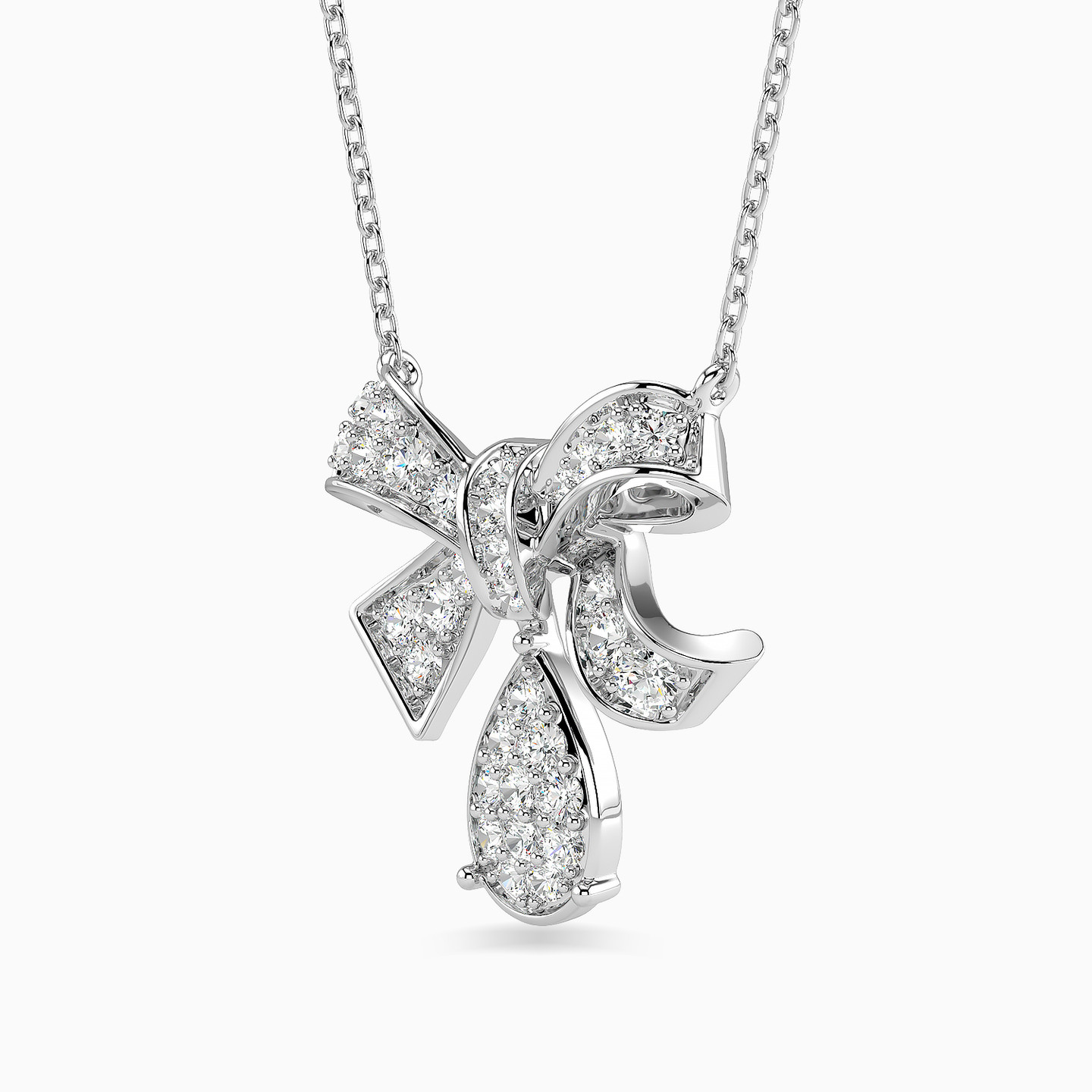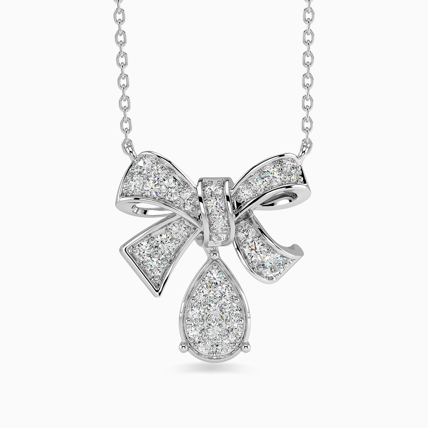 Make a grand entrance wearing the perfect amount of diamond dazzle that turns heads and has everyone looking in your direction. This magnificent 0.36-carat diamond bow pendant from L’azurde Diamonds is the quintessential accessory for parties and formal dinners. Wear this gorgeous 18-karat white gold diamond pendant necklace to add an eye-catching feminine dazzle to evening wear.
