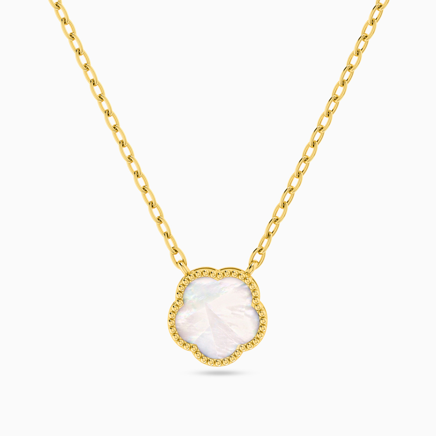 The white stone pendant in this Miss L’ necklace lends a cool and calm vibe to any outfit. A perfect accessory to brighten up your day to evening looks, this 18-karat yellow gold piece can be worn solo or layered with chains of different lengths.
