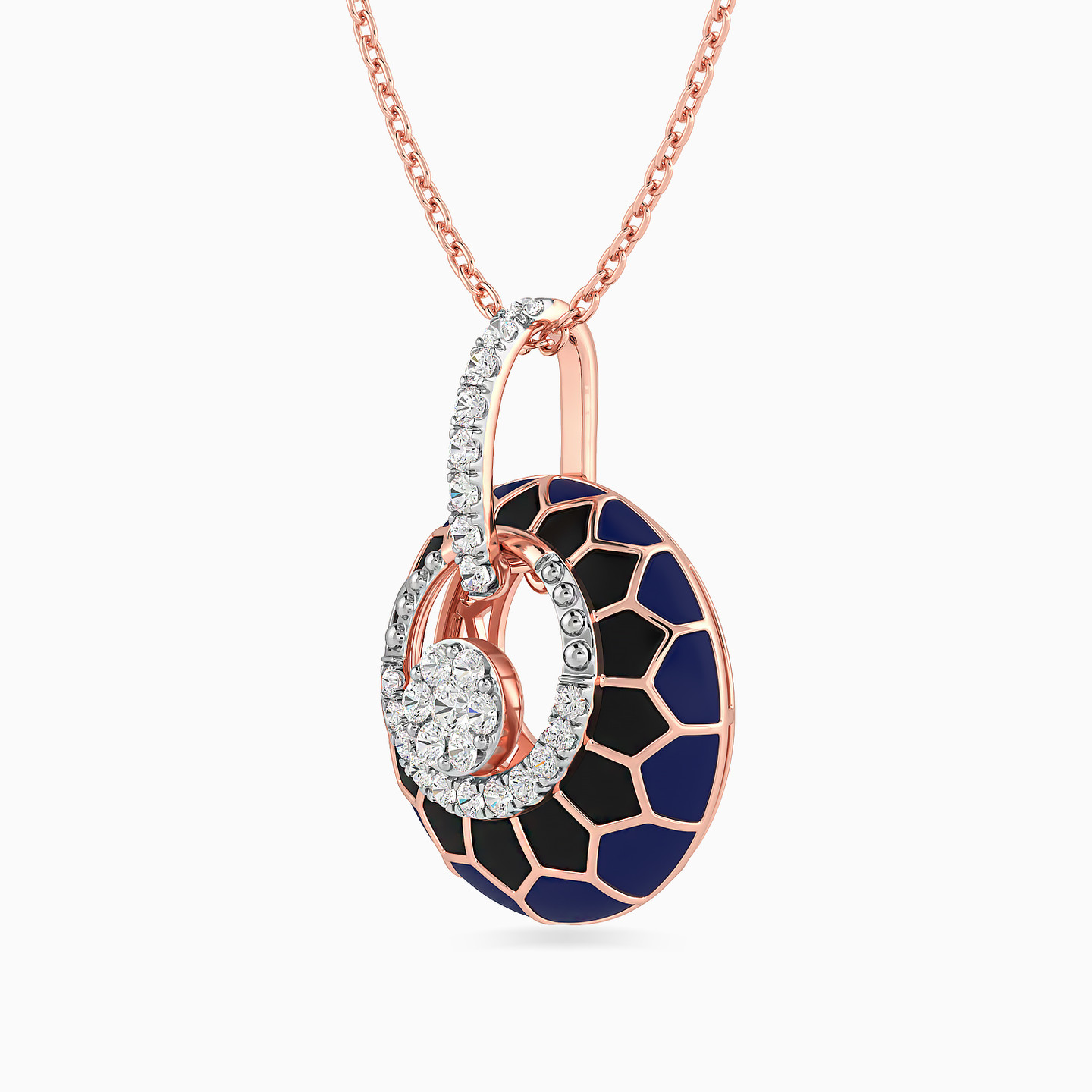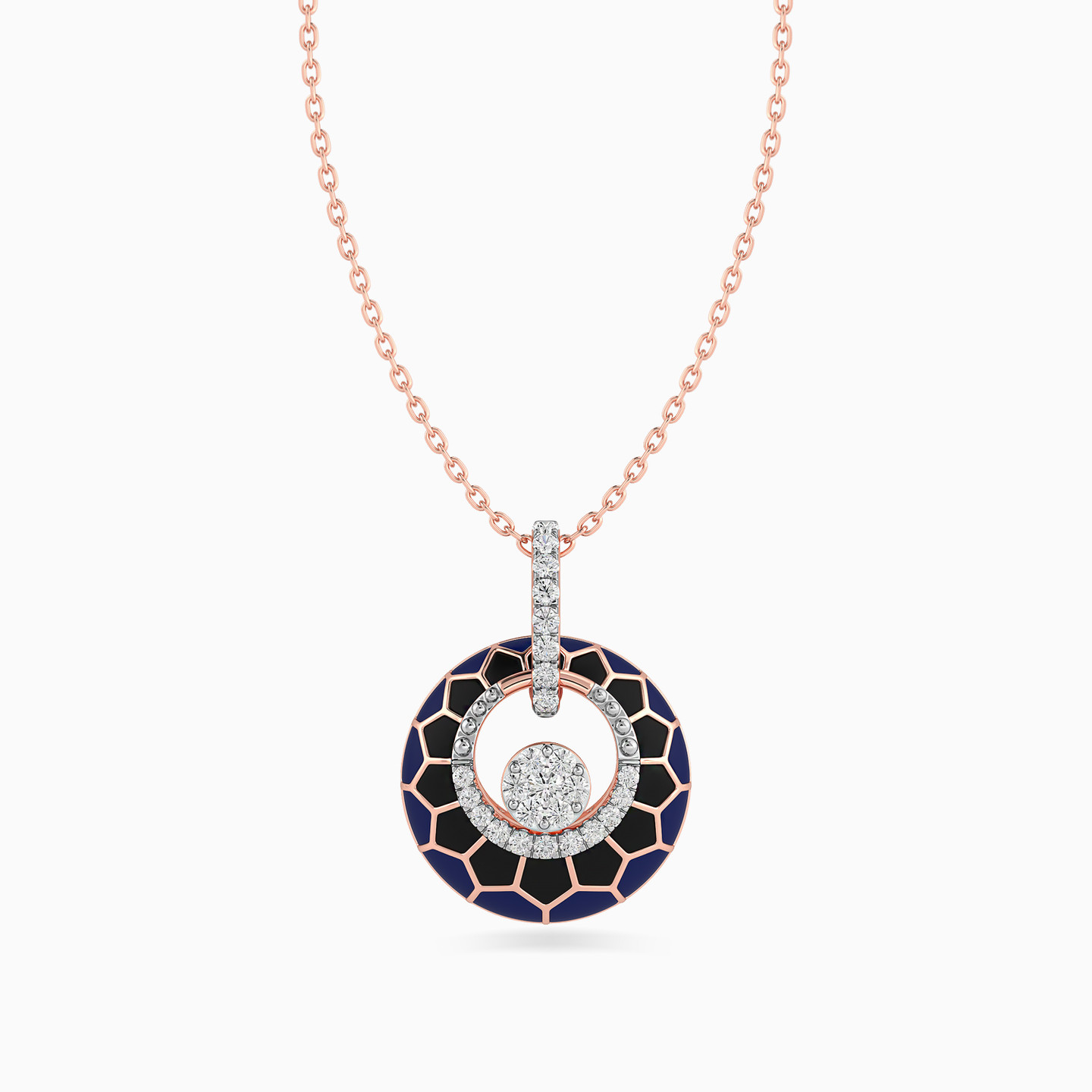Slip into that traditional style with this necklace from L'azurde Diamonds. The blue and black accented pendant elegantly illuminates with the shine of brilliant cut diamonds to the center as it drops from an 18-karat rose gold chain. This number will instantly elevate any day to evening look.