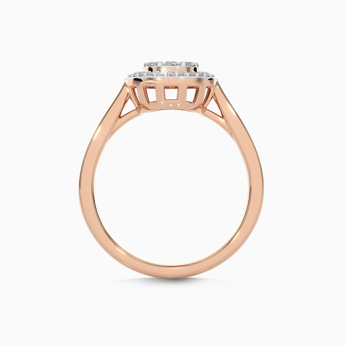 The perfect accessory for elevating any look, this chic ring from L'azurde Diamonds is a feminine everyday choice. Finely crafted in 18-karat rose gold, this elegant ring shines with a sleek design and brilliant cut diamond centerpiece, accented by a sparkling diamond halo. Timeless and beautiful, this ring complements your business and dressy attire.