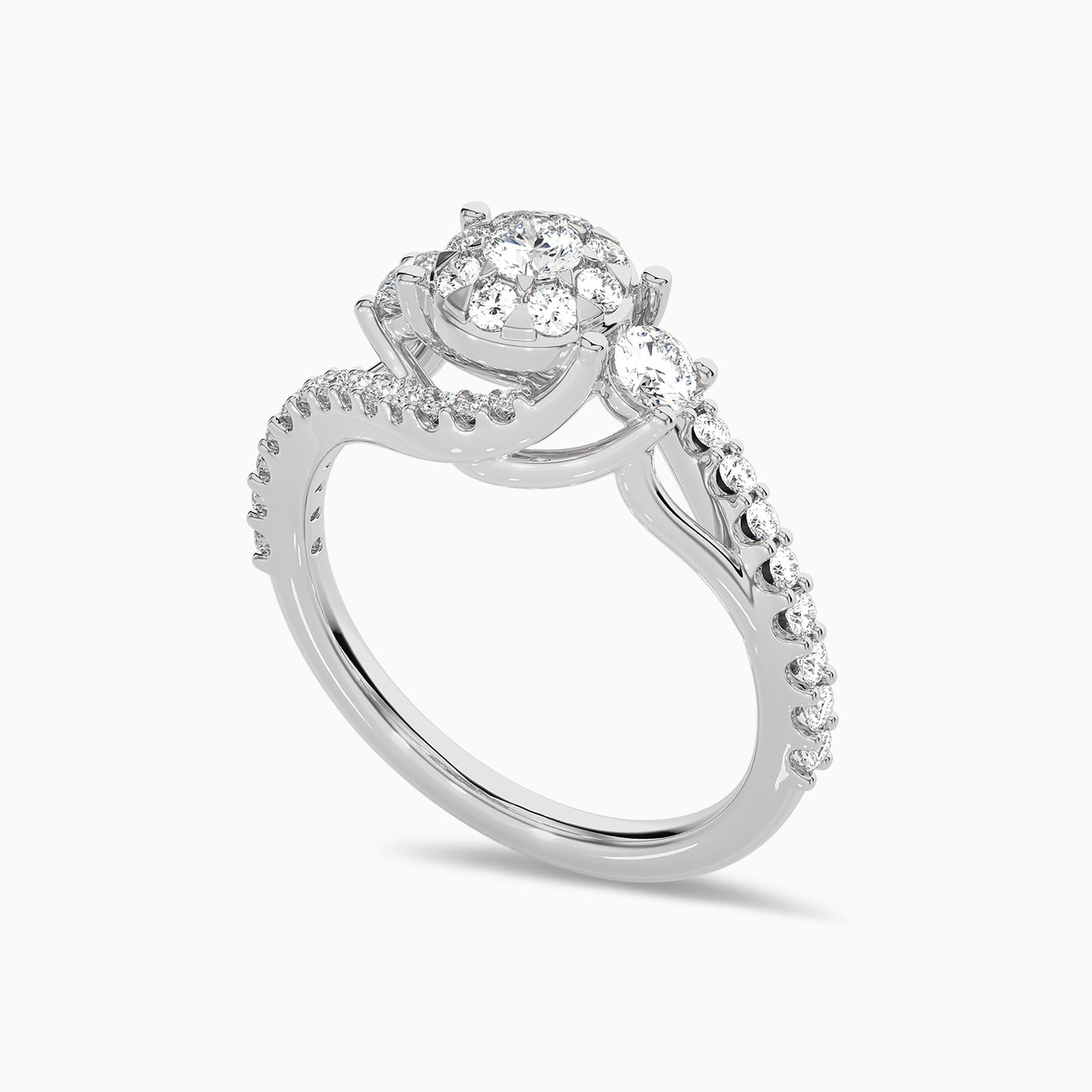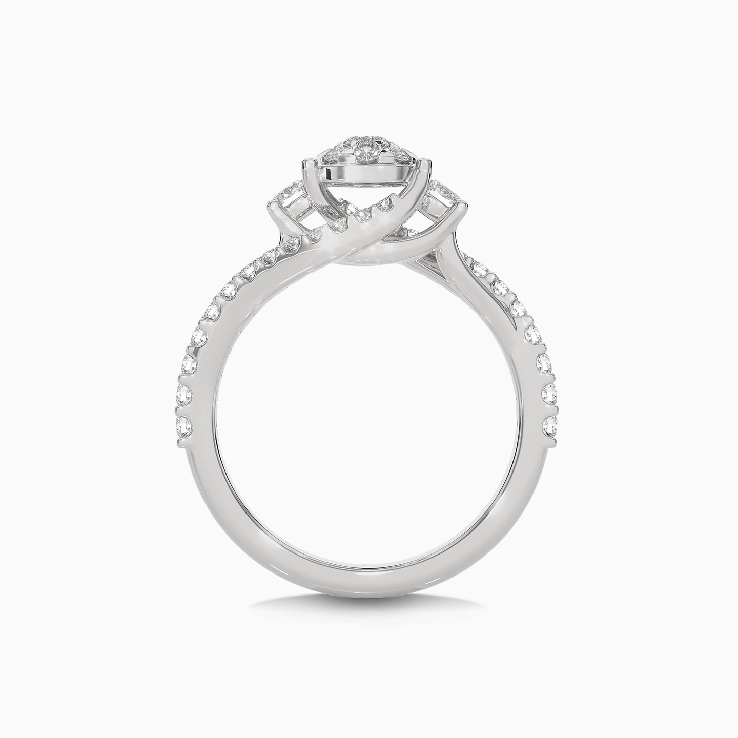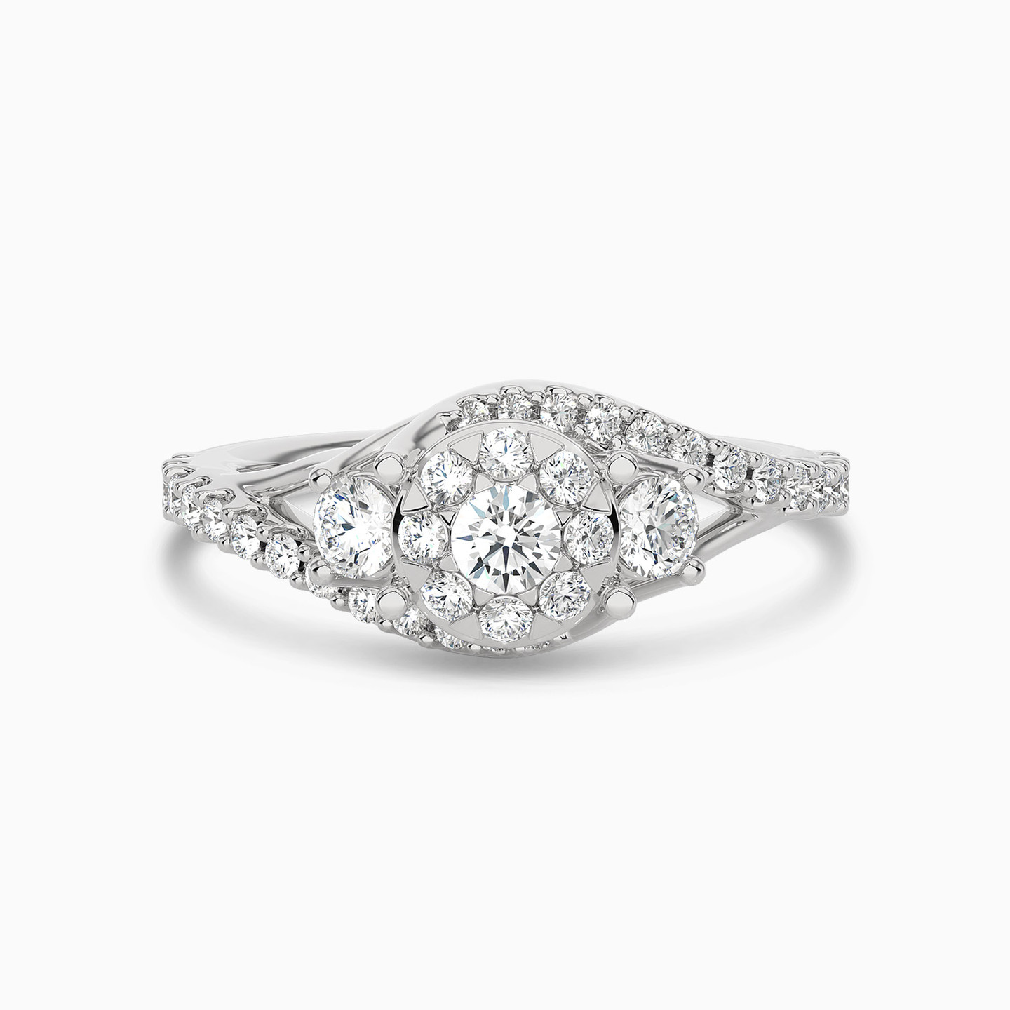 Dress to impress by wearing this eye-catching diamond statement ring from L'azurde Diamonds. The ideal ring for a night out on the town, this shimmering 18-karat white gold ring dazzles with brilliant cut diamonds and a mesmerizing crossover prong design that offers the extra wow factor when you want to turn heads. We love this split shank ring paired with dressy looks or to glam up office outfits.