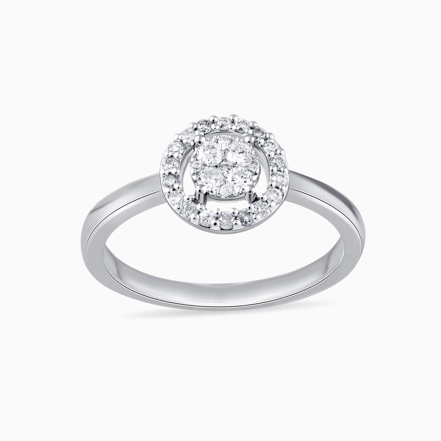 No matter where life takes you, this striking ring from L’azurde Diamonds will take you there in luxurious style. Beautifully crafted in 18-karat white gold, this magnificent ring features a round cluster of 0.27-carat brilliant cut diamonds framed in a halo of brilliance. We recommend giving this ring the attention it deserves by pairing it with diamond stud earrings and a diamond pendant to lend further glamour to an elegant evening gown at your next social event.