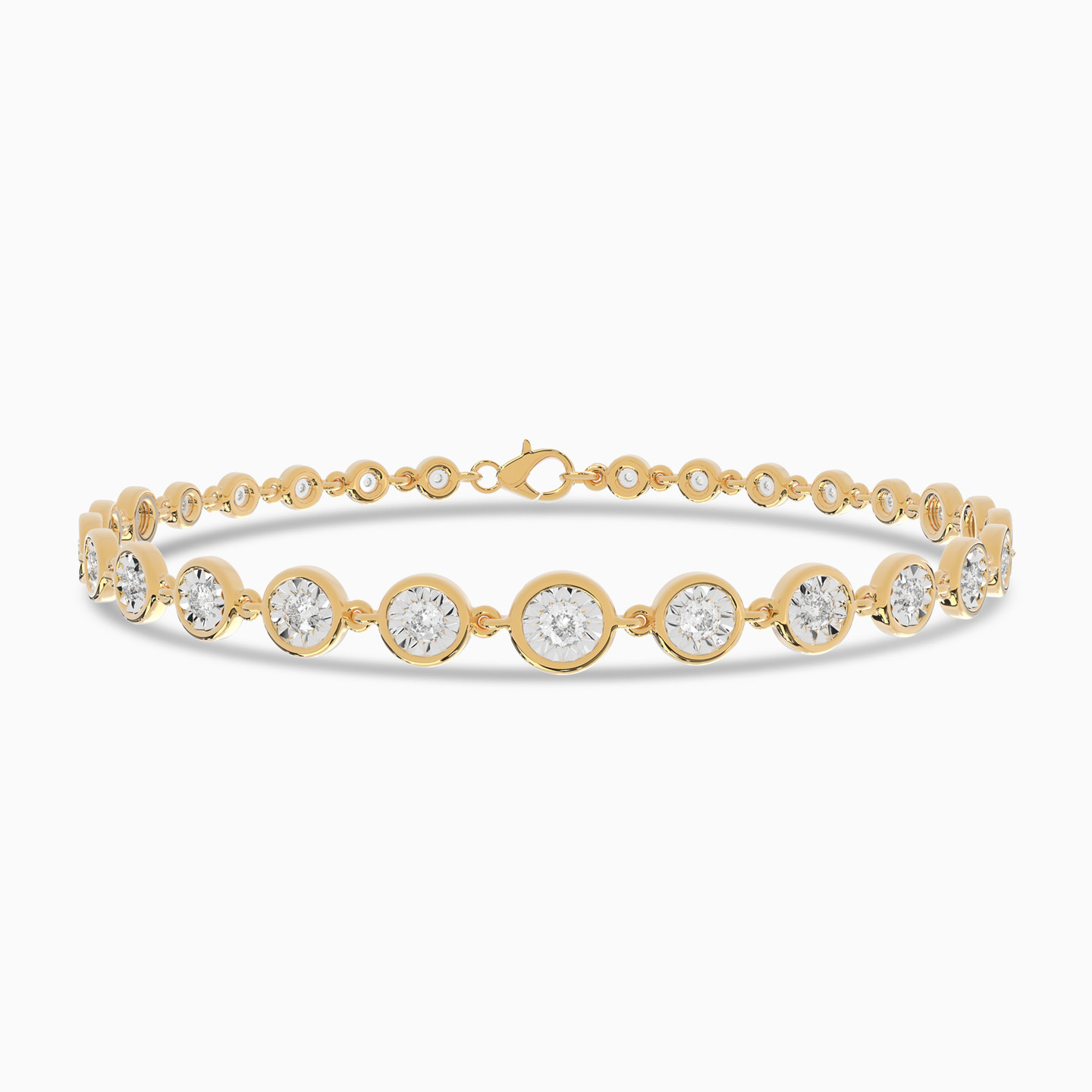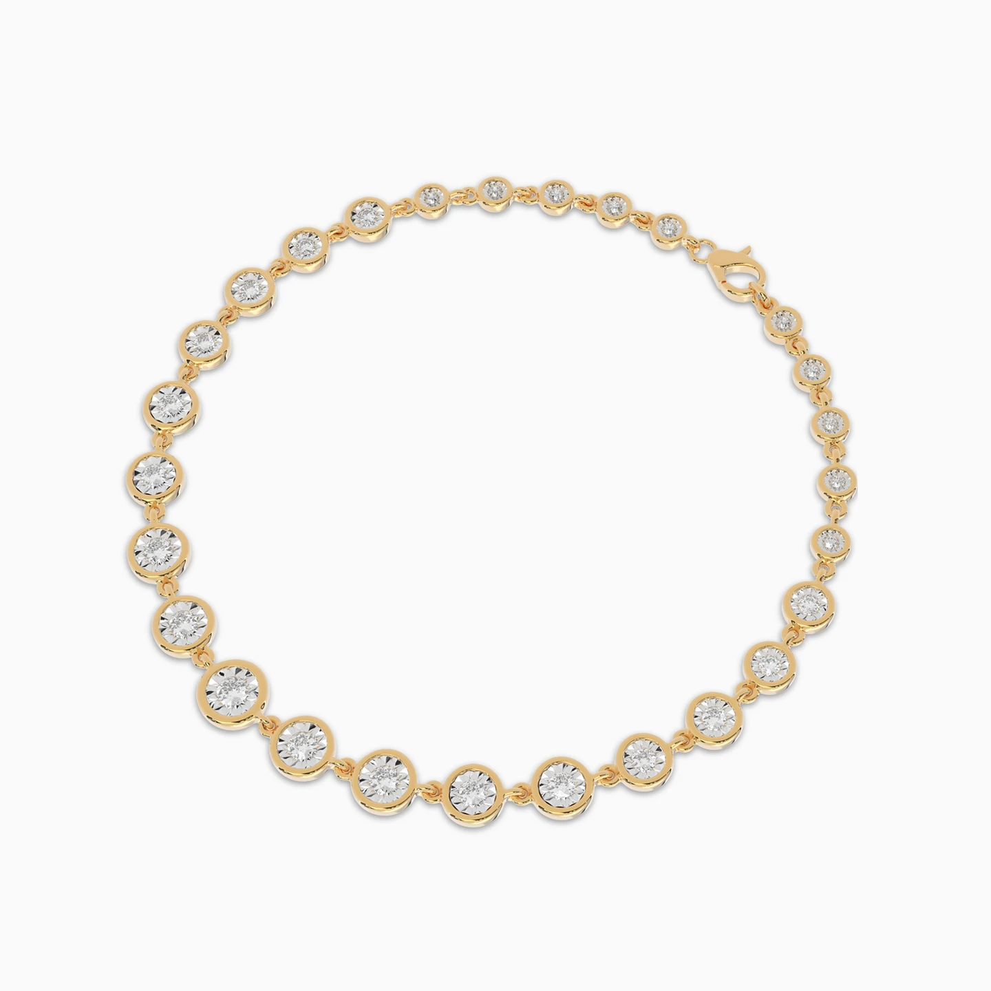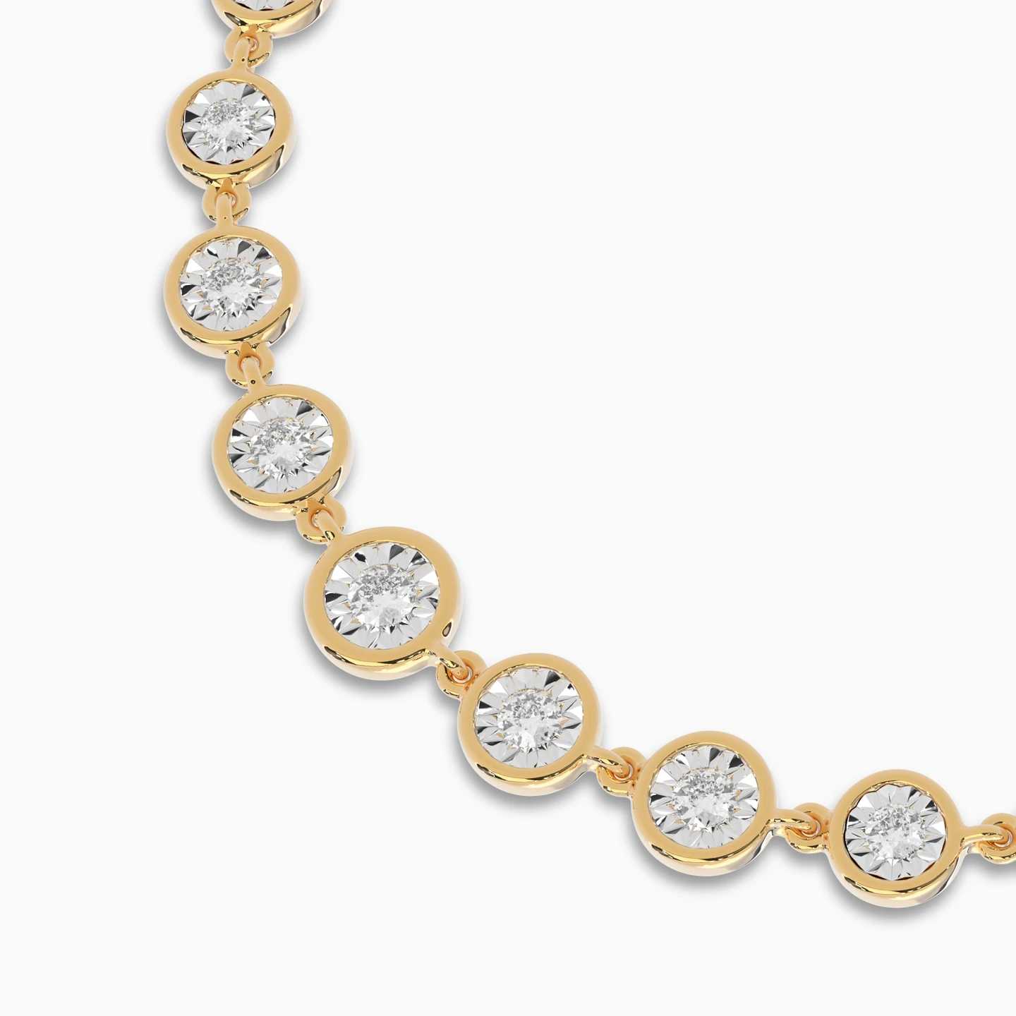 Elevate your look to luxury with this shiny piece from Lazurde Diamonds! This exquisite 18K yellow gold chain bracelet features delicate circles, each adorned with a sparkling diamond, gracefully link together to create a mesmerizing and sophisticated look. This piece is a testament to Lazurde Diamonds' commitment to crafting jewelry that embodies both timeless beauty and contemporary allure.